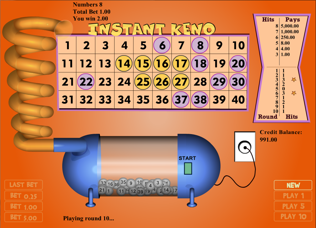 Игрок выбирает от 3 до 10 чисел от 1 до 40, после чего игра выбирает 10 чисел. Чем больше чисел, выбранных казино, совпадают с выбором игрока, тем больше он выигрывает.