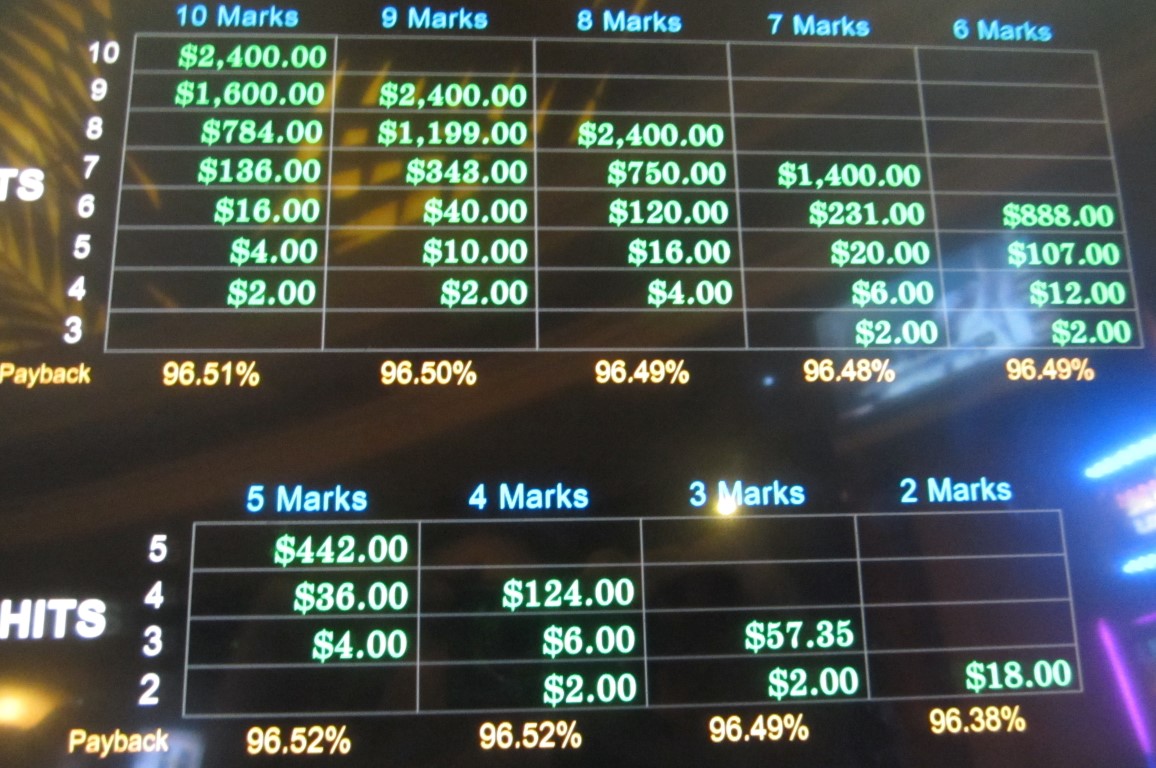 Приведенные ниже таблицы основаны на таблице выплат для ставки в 2 доллара.
