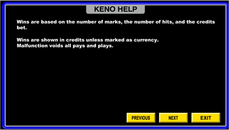 Таблица выплат Pick 9 -- 2,4,15,60,215,1500 Таблица выплат