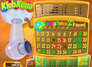 Интернет-казино, использующие программное обеспечение Gamesys, предлагают игру под названием «Клуб Кено». Она похожа на кено с 40 шарами , за исключением того, что если специальный «звездный шар» совпадает с одним из выбранных игроком шаров, то выигрыш удваивается.