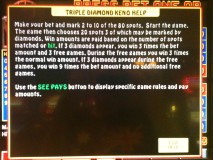 Triple Diamond Keno — малоизвестная игра, основанная на кено, которая существует с 1996 года. Она похожа на обычное кено, за исключением того, что при вытягивании шаров могут также открываться бриллианты. Если обнаруживаются три бриллианта, игрок выигрывает в три раза больше своей ставки плюс три бесплатных игры с утроенным множителем.