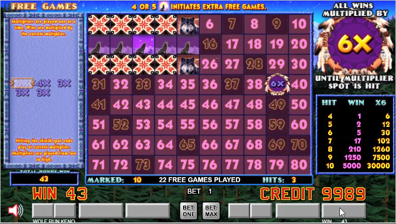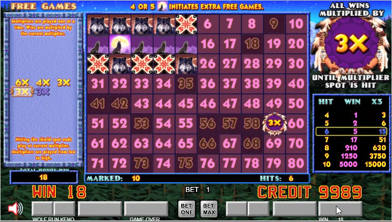 Wolf Run Keno — это разновидность кено от Action Gaming. В игре есть бонусный раунд с бесплатными вращениями и случайными множителями, который может длиться на протяжении многих вращений.