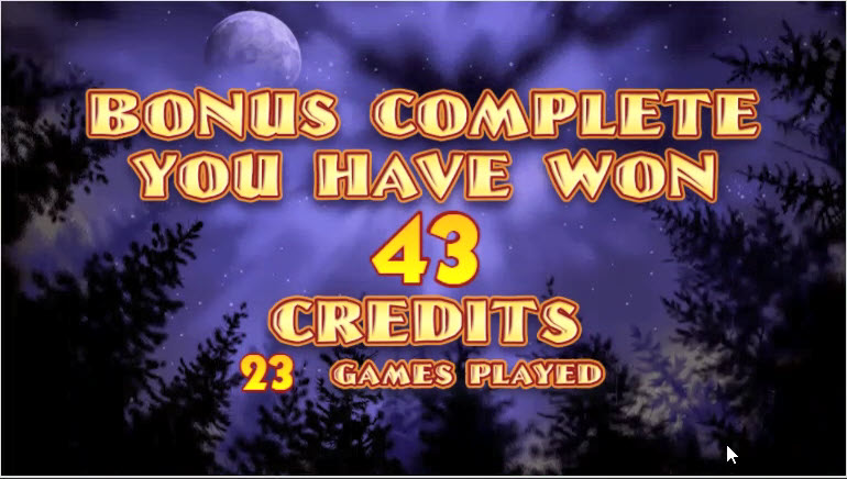 Изображение выше суммирует мои результаты по бонусам — 23 сыгранных игры и выигрыш в 43 кредита.