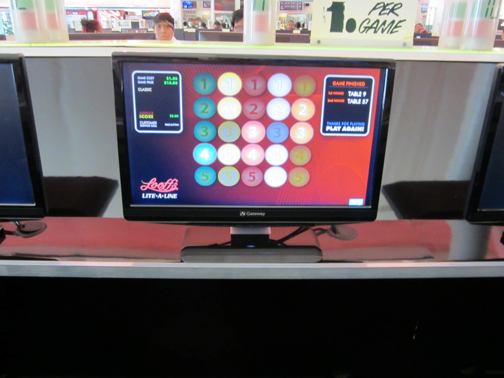 Я зашёл в Looff's около часа дня солнечным сентябрьским днём. Когда я вошёл, я, наверное, выглядел растерянным, так как понятия не имел, чего ожидать. Всё, что я знал, это то, что игра представляла собой нечто среднее между бинго и пинболом. Приятная женщина быстро спросила, может ли она мне помочь. Я сказал, что играю впервые и понятия не имею, что делать. Она терпеливо объяснила правила и позволила мне сыграть пару тренировочных игр. Во время одной из тренировочных игр она заставила меня остановиться, потому что мне не хватило всего одного числа до выигрыша, а поскольку я просто тренировался, она не хотела, чтобы я украл выигрыш у игрока, который заплатил.После тренировочных игр я с нетерпением ждал возможности сыграть по-настоящему и подошел к кассе. Милая девушка объяснила, как каждый игрок получает карточку с фотографией. Затем деньги конвертируются в кредиты, которые электронным способом зачисляются на карту. Как новый игрок, я мог получить пять игр по цене одной. У них также действовала акция: при покупке кредитов на 40 долларов вы получали бесплатную футболку. Несмотря на то, что у меня и так было много футболок, я не прочь добавить «бесплатную» в свою коллекцию. Итак, имея 45 долларов кредитов и новую футболку в руках, я был полон энтузиазма и готов играть!