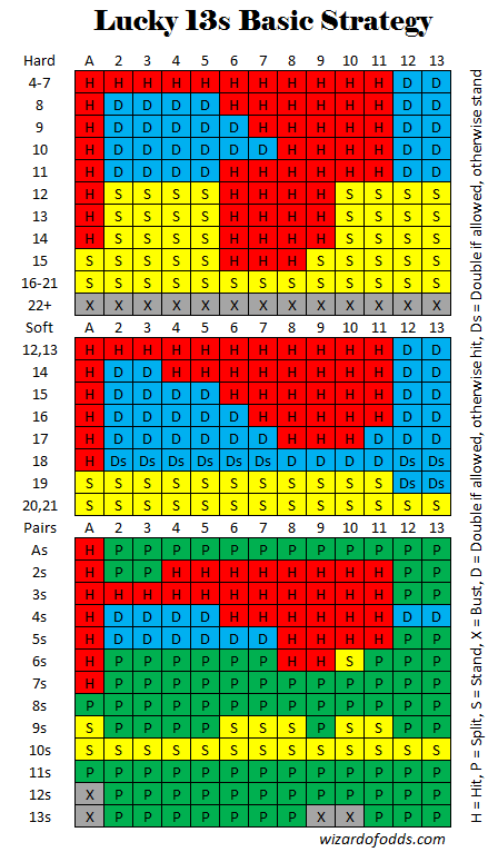 Концепция игры в блэкджек «Lucky 13s» проста. Это блэкджек, в каждую колоду которого добавлены четыре карты: 11, 12 и 13. В остальном правила в основном такие же, как и в стандартном блэкджеке.