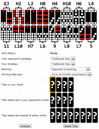 Мой калькулятор для игры в пай-гоу покажет вам ожидаемую выгоду и/или стратегию для любой раздачи, а также множество других функций, включая влияние фишек, которые, как известно, находятся у других игроков или у вашего противника.
