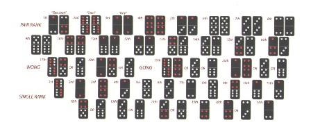 Каждая комбинация фишек в наборе китайских домино формируется на основе результатов броска двух шестигранных кубиков. Таким образом, существует 21 уникальная комбинация (6+5+4+3+2+1).