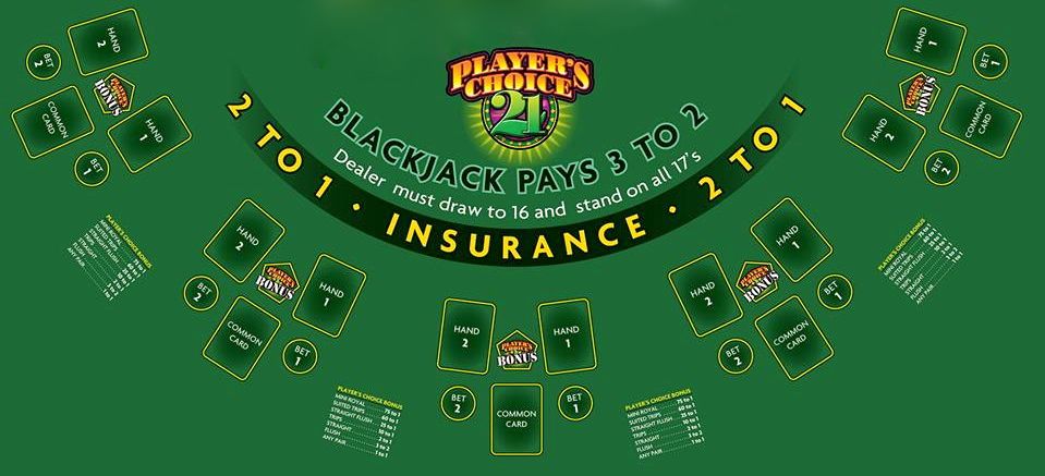 Player's Choice 21 — это вариант блэкджека, который я заметил в отеле Palazzo 17 августа 2013 года. Суть игры заключается в том, что игрок начинает с тремя картами и использует их для формирования двух стартовых комбинаций в блэкджеке. Одна карта, по выбору игрока, будет общей для обеих комбинаций. Для компенсации этой особенности игра предусматривает дополнительную ставку с отрицательным математическим ожиданием.