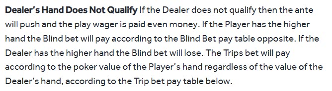 31 мая 2024 года кто-то написал на моём форуме , что казино Genting в Великобритании не следуют общепринятым правилам. Вместо этого они автоматически выплачивают ставку Play в равных суммах, если дилер не соответствует условиям. В подтверждение своих слов он предоставил ссылку на правила на сайте казино. Ниже я привожу скриншот этих правил.