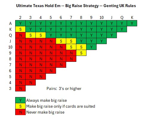 Я предполагаю, что читатель уже знаком с общепринятыми правилами игры в Ultimate Texas Hold 'Em . Согласно этим правилам, ставка Play всегда действует и выплачивается в равных суммах, если игрок выигрывает. Для целей ставки Play (иногда называемой ставкой Raise) не имеет значения, имеет ли дилер пару.
