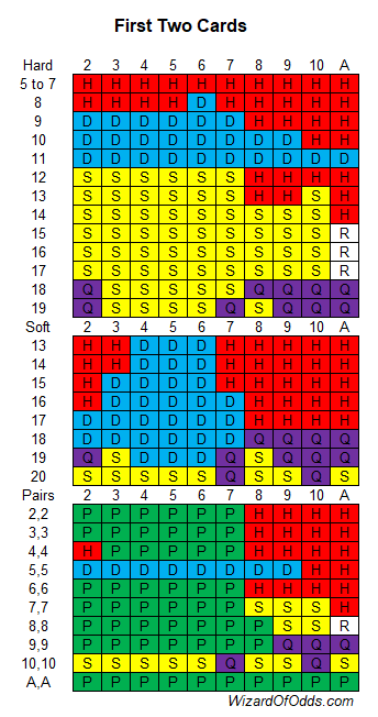 В следующей таблице показано преимущество казино при ставках Hedge в соответствии с таблицей выплат 2, при условии наличия шести колод и того, что дилер берет карту при мягкой 17.