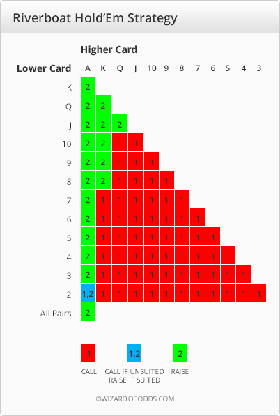 Riverboat Hold'em Poker — это настольная игра в покер, распространенная в штатах Миссисипи и Индиана. Обычно я провожу весь анализ для этого сайта самостоятельно. Однако в случае с этой игрой расчеты выполнены Стэнли Ко. Владелец игры предоставил мне отчет Стэнли с разрешением на публикацию на этом сайте. Я могу независимо ручаться только за таблицы ставок на ривере.