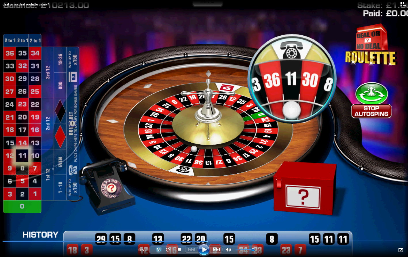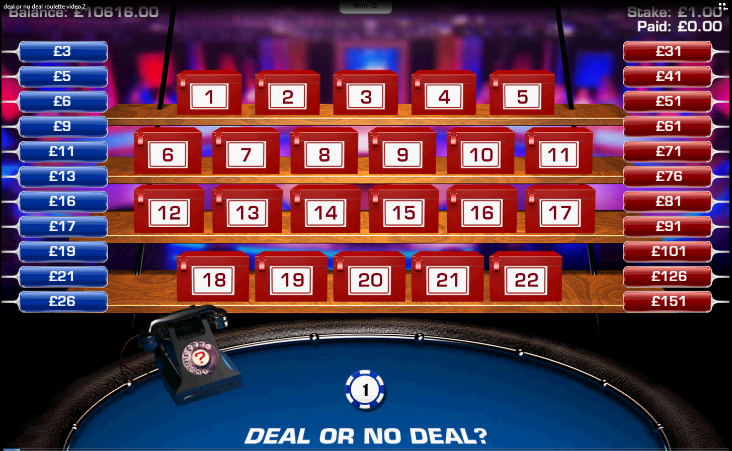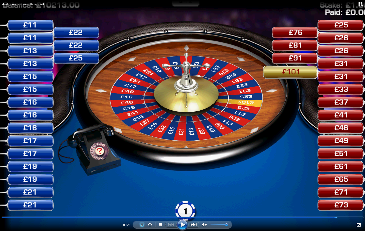 Рулетка «Deal or No Deal» основана на традиционной рулетке с одним зеро, но с добавлением дополнительной ставки, называемой «бонусной ставкой». В зависимости от того, где остановится дополнительное колесо, игрок может сыграть в один из двух бонусных раундов.