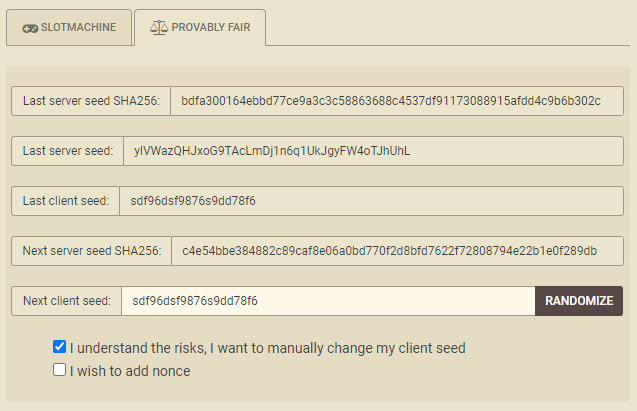 На этой странице объясняется принцип работы конкретного игрового автомата, основанного на зашифрованном процессе честной игры. В конечном итоге, результат во всех игровых автоматах определяется случайными числами. В случае зашифрованных игр случайные числа основаны на длинной последовательности случайных символов.