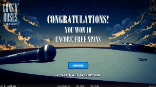 В бонусном раунде Encore Free Spins игрок получает десять бесплатных вращений. Любой уважающий себя бонусный раунд бесплатных вращений должен быть особенным, и GNR не является исключением. В каждом бесплатном вращении игра выбирает случайный барабан, который становится полностью диким, представленным тремя расположенными друг над другом позициями участников группы. И барабан, и участник группы выбираются до того, как остальные барабаны остановятся и наложат на него свой символ. Более того, этот участник группы станет диким на остальных четырех барабанах.