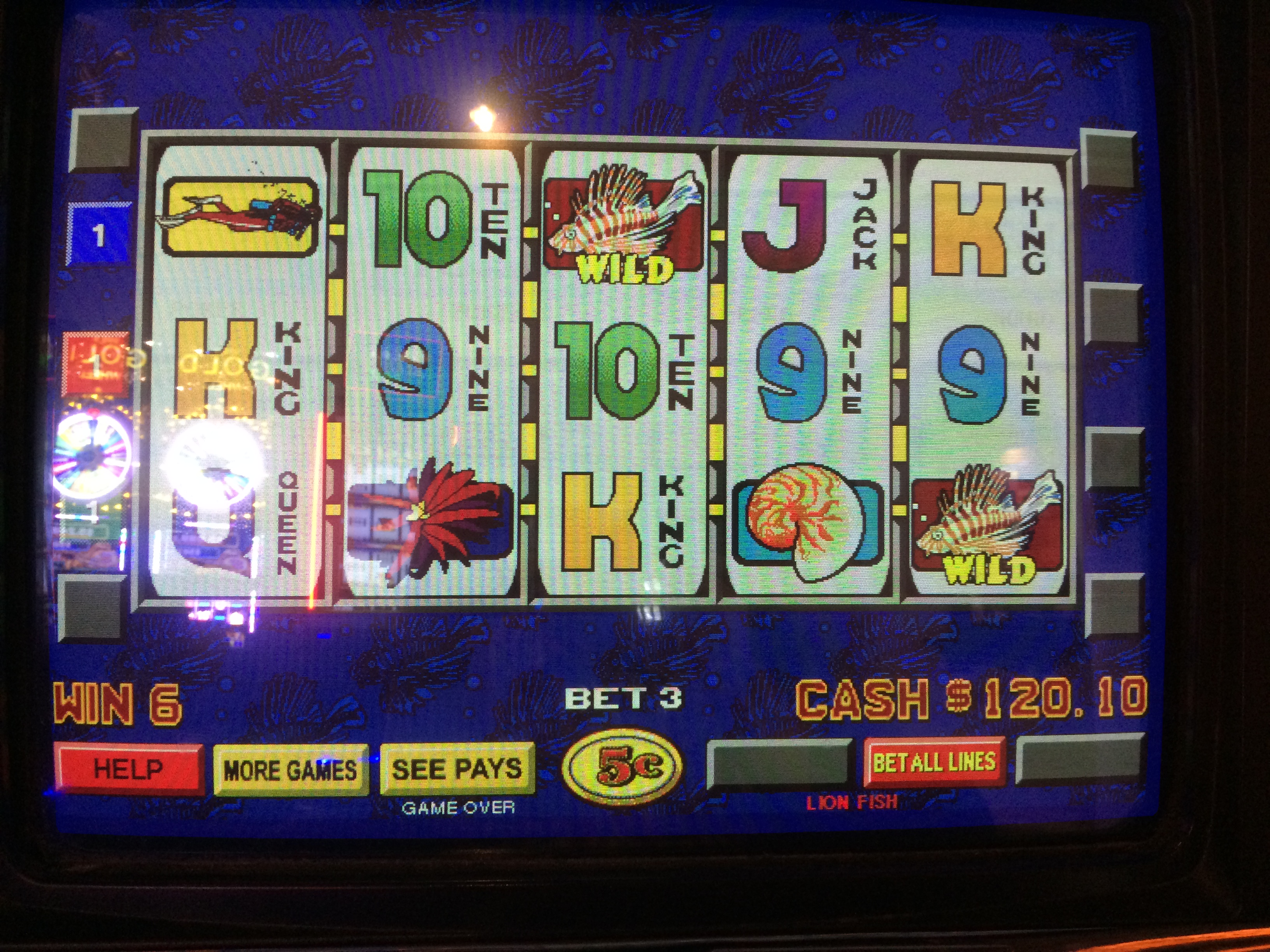 Как и в случае с играми, которые я уже разбирал ранее, Jackpot Party и Hexbreaker , я выбрал Lionfish, потому что в ней не было бонусных вращений. Единственной загадкой было снятие бонусов с барабанов. Я сыграл в эту игру в казино Rampart в Лас-Вегасе. Оно располагалось в оживленном месте рядом с пунктом охраны, поэтому я незаметно положил камеру в карман рубашки. Я выложил видео своей игры на YouTube. Приношу извинения за ужасное качество видео.