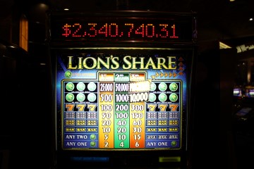 Lion's Share — это трёхбарабанный прогрессивный игровой автомат, который можно было найти в MGM Grand в Лас-Вегасе. Учитывая возраст автомата и высокую текучесть кадров в игорном бизнесе, никто точно не знает историю игры. Однако, я думаю, можно сказать, что это самый старый игровой автомат в MGM, и джекпот не выигрывался уже много лет. По сегодняшним меркам он очень устарел: механические барабаны, размытая графика, и для вывода средств требуется оплата наличными.
