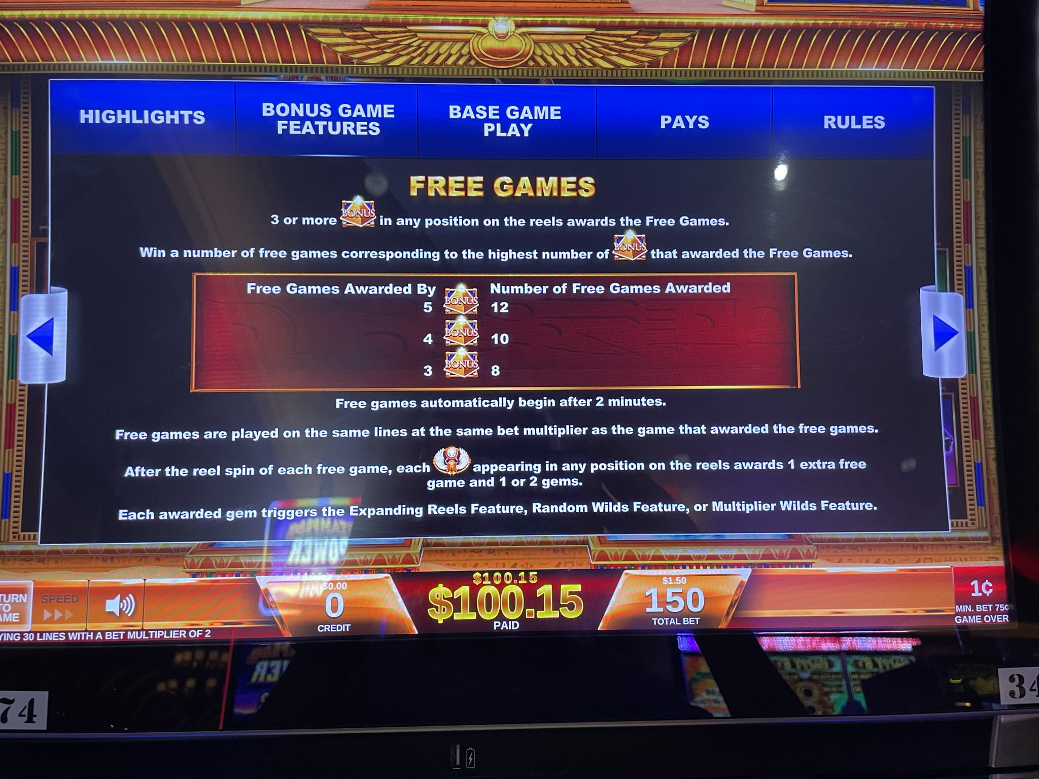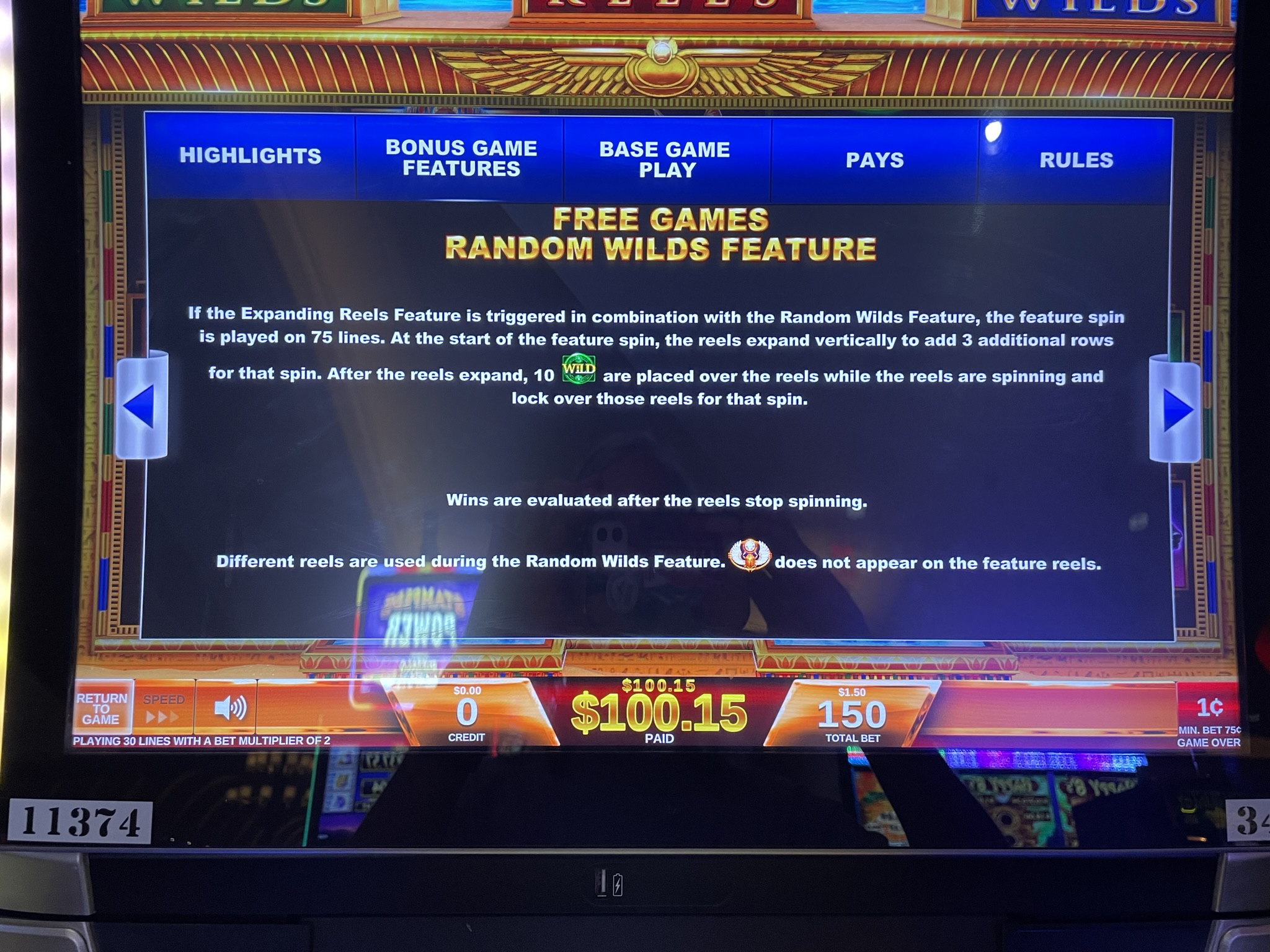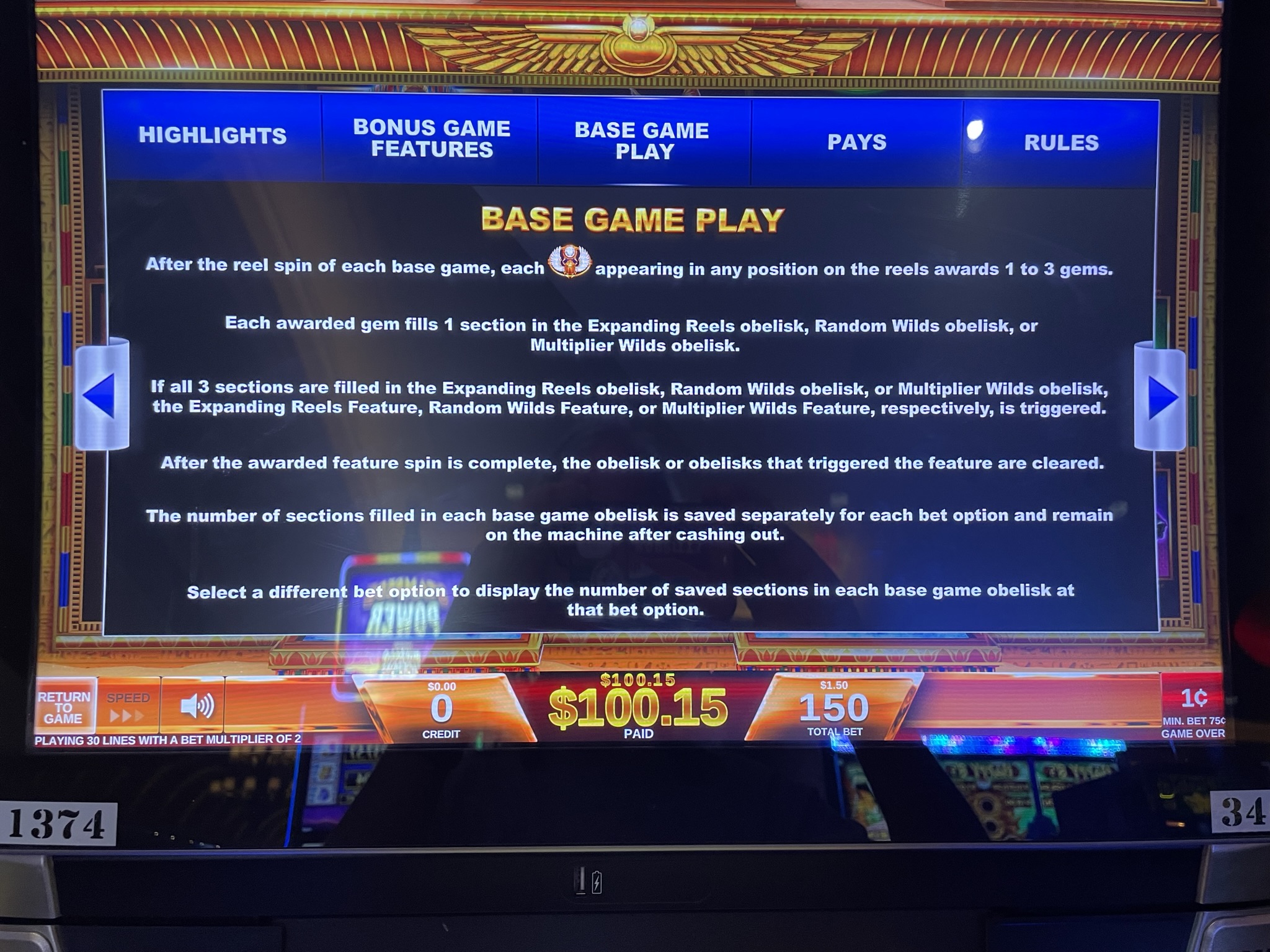 За получение всех трех частей красного обелиска игрок получит бонусный спин с эффектом случайных диких символов. В этом спине барабаны расширяются с трех рядов до шести. Что еще важнее, количество линий выплат увеличилось с 30 до 75. Я почти уверен, что также используется более щедрая процедура удаления символов с барабанов.