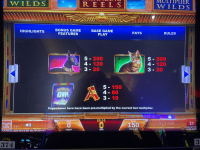 - Если игрок соберет хотя бы три разбросанные пирамиды, он сыграет в бонусную игру. За три пирамиды игрок получит восемь бесплатных вращений, за четыре пирамиды — десять, а за пять пирамид — двенадцать.