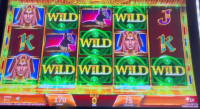 В приведенном ниже примере игра наградила меня шестью «липкими» вайлдами. После остановки барабанов седьмой вайлд остановился в нижней позиции 4-го барабана. Мой общий выигрыш составил 10,45 долларов, или в 13,93 раза больше суммы ставки на первом вращении.