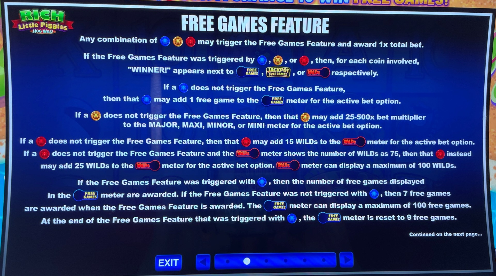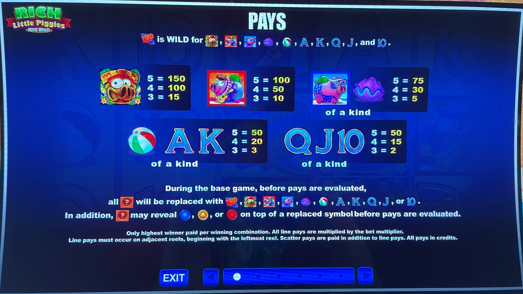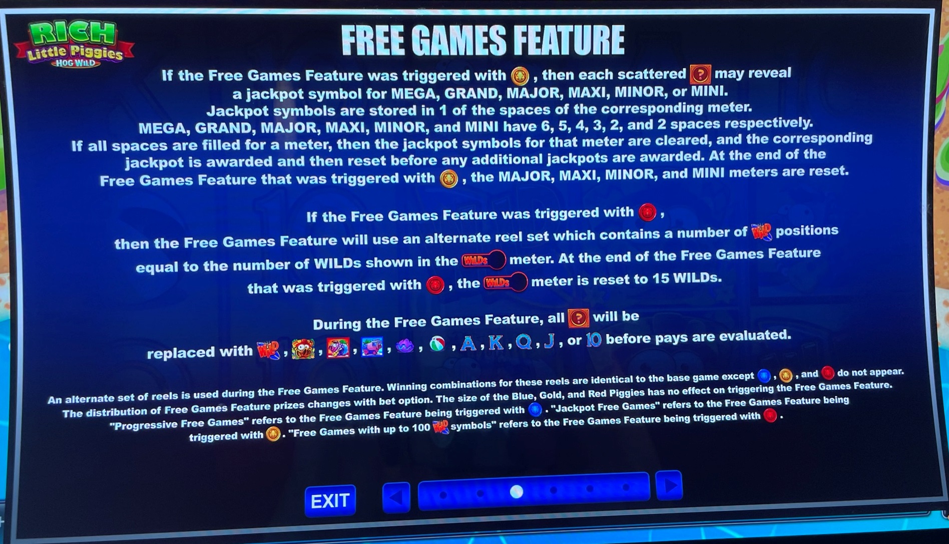 Правила игры "Rich Little Piggies" в версии Hog Wild практически идентичны правилам версии Meal Ticket, за исключением бонуса "Красный". Ниже приведены правила получения бонуса "Красный" в версии Meal Ticket.