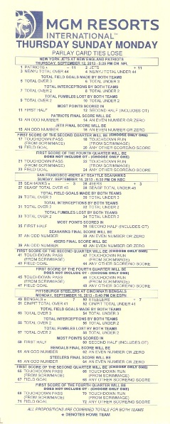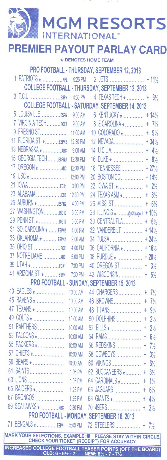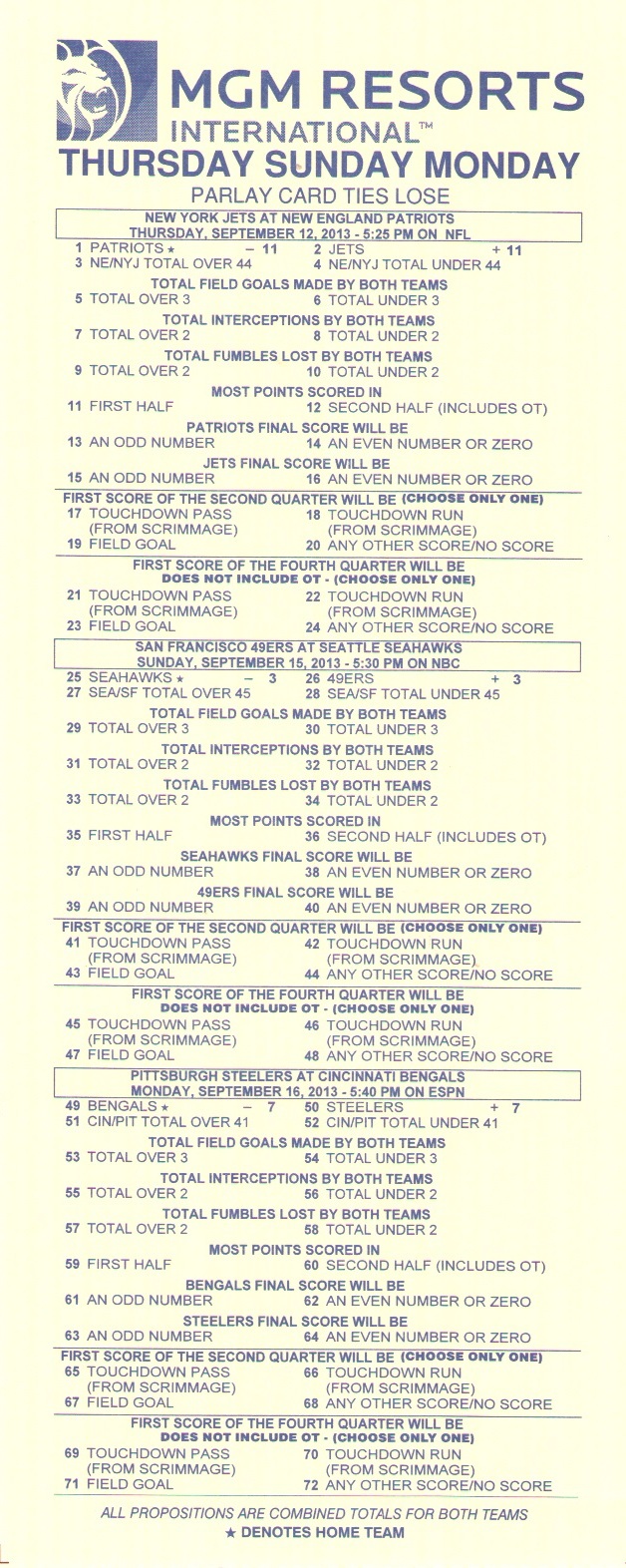 Все проценты выигрышей на этой странице основаны на 4950 играх, сыгранных в сезонах с 1994 по 2012 год. За исключением случаев, когда указано иное, все прогнозы относятся к ставкам против спреда. Я не рекомендую ставить на тотал в экспресс-ставках, если нет существенного изменения коэффициентов.