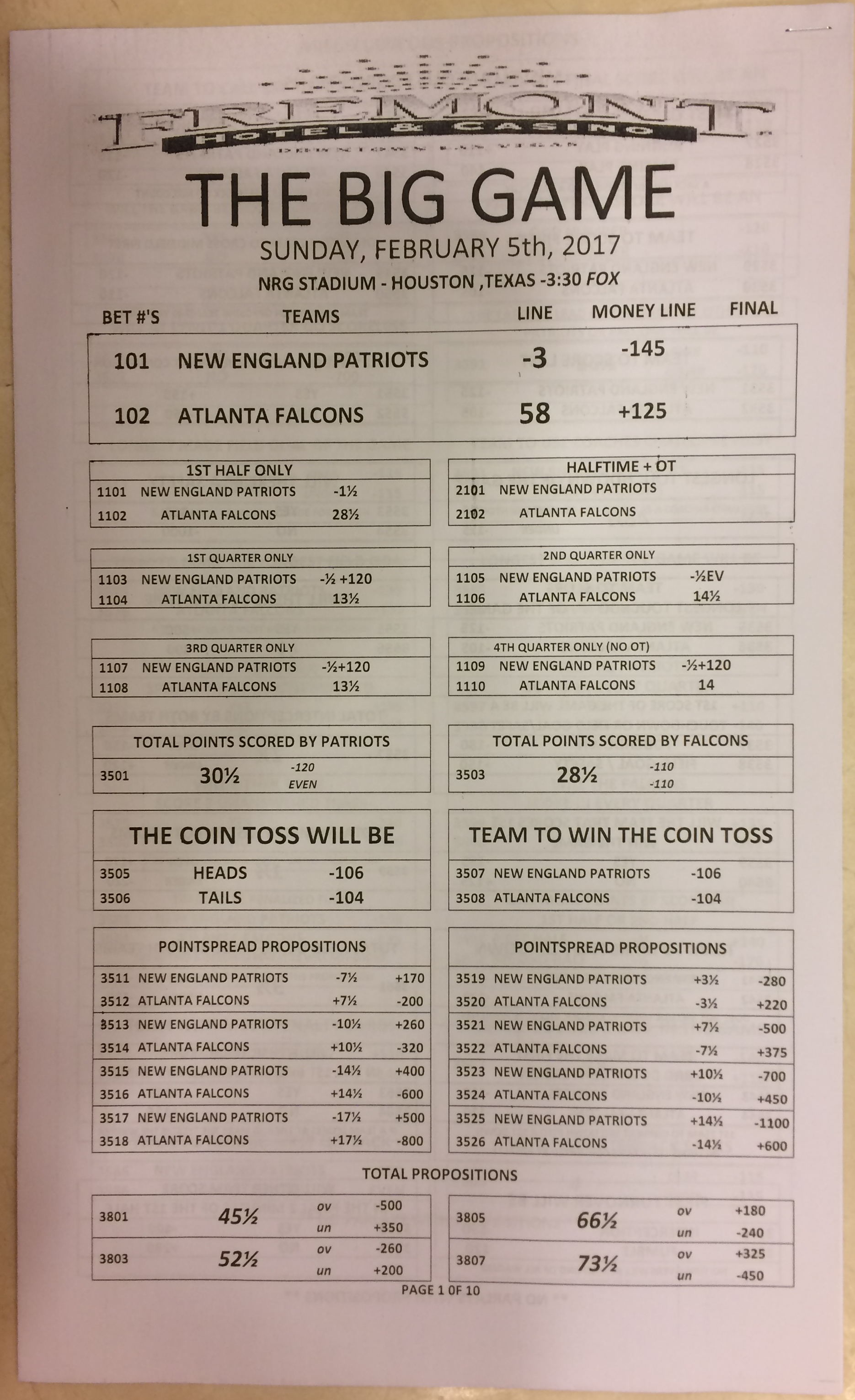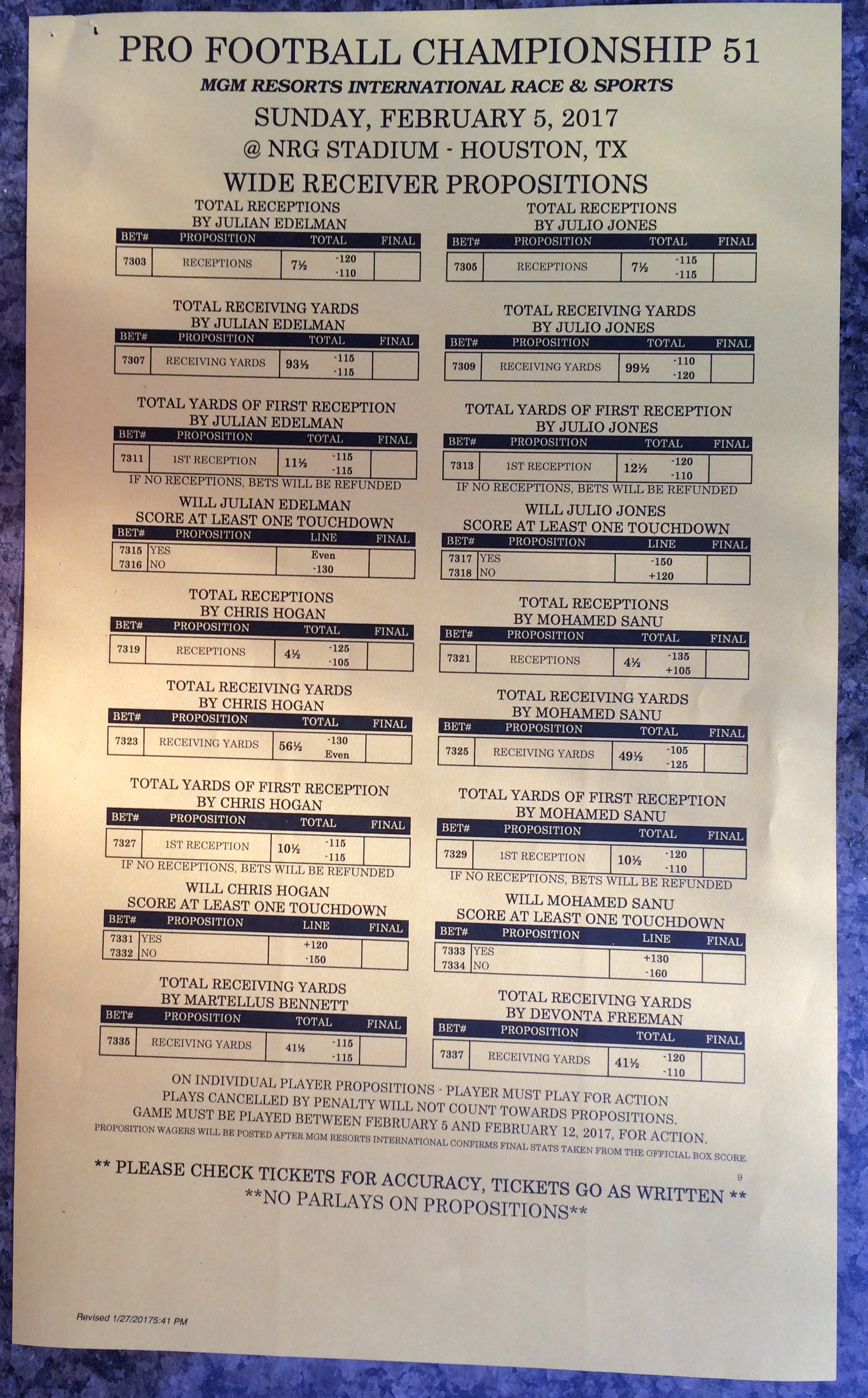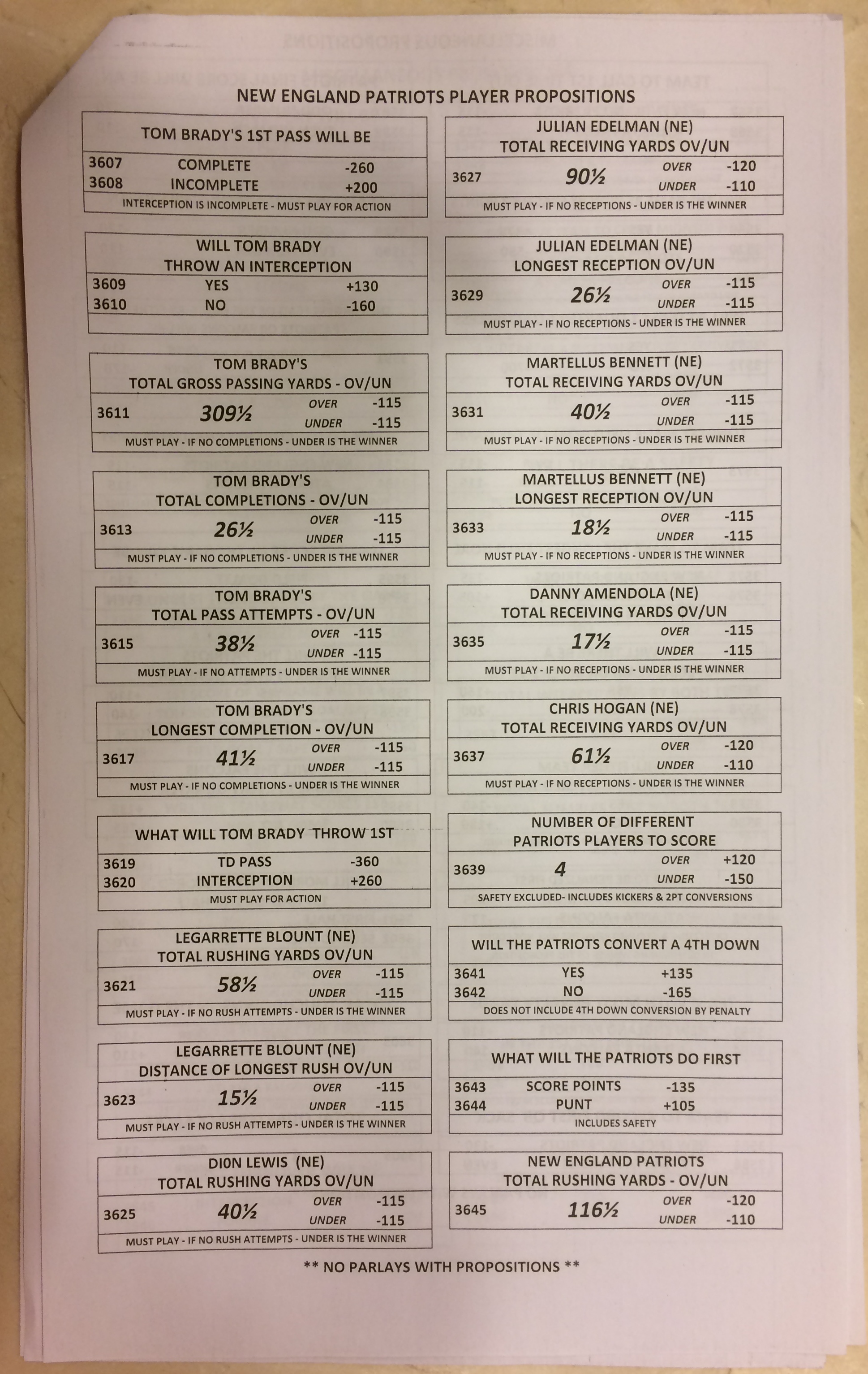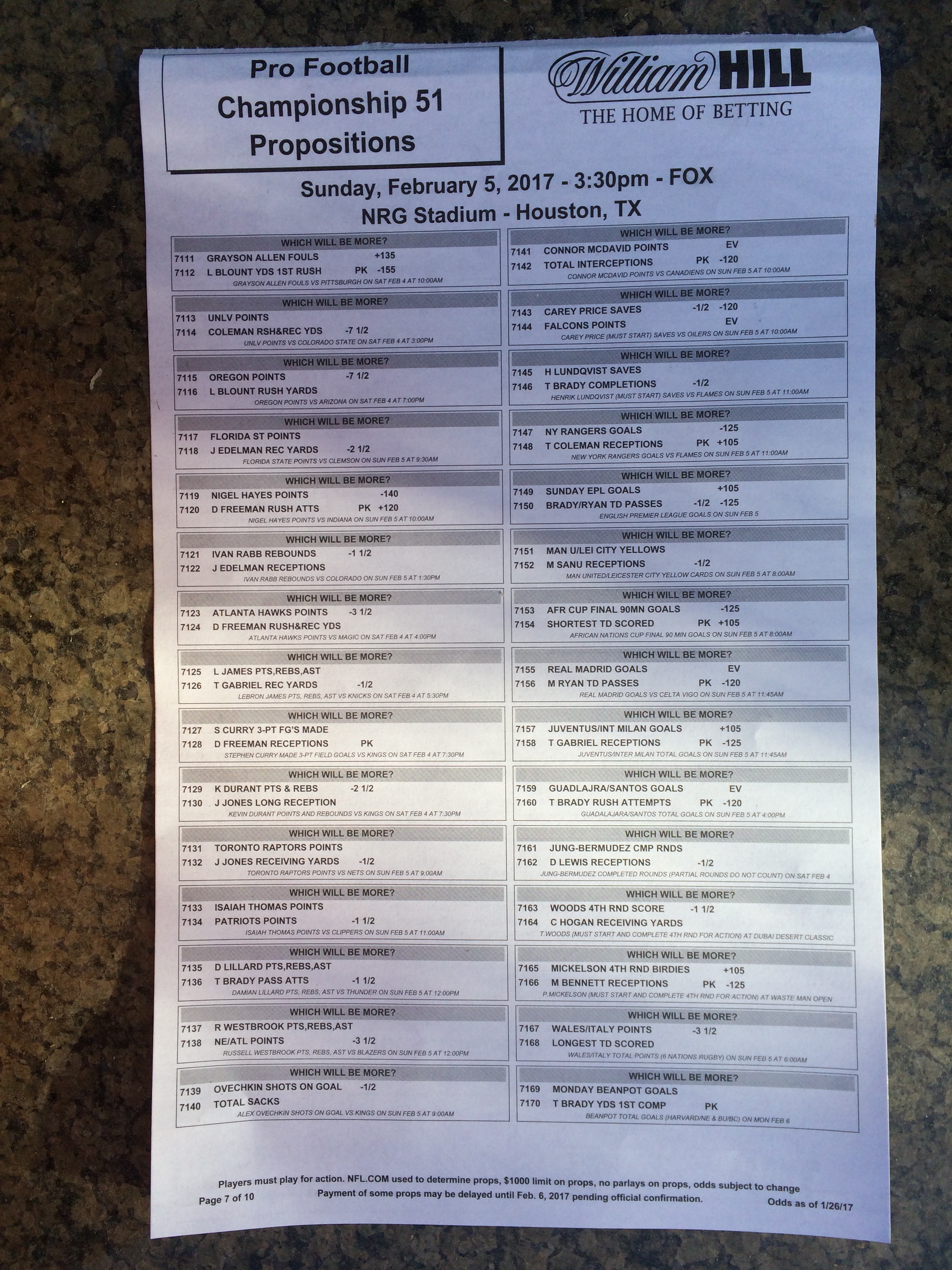 Хотя в этом году я не буду давать вам никаких прогнозов, вы хотя бы можете посмотреть, что есть в наличии. Вот несколько фотографий списков ставок на Супербоул 51. В дни, предшествующие игре, должно появиться больше вариантов.