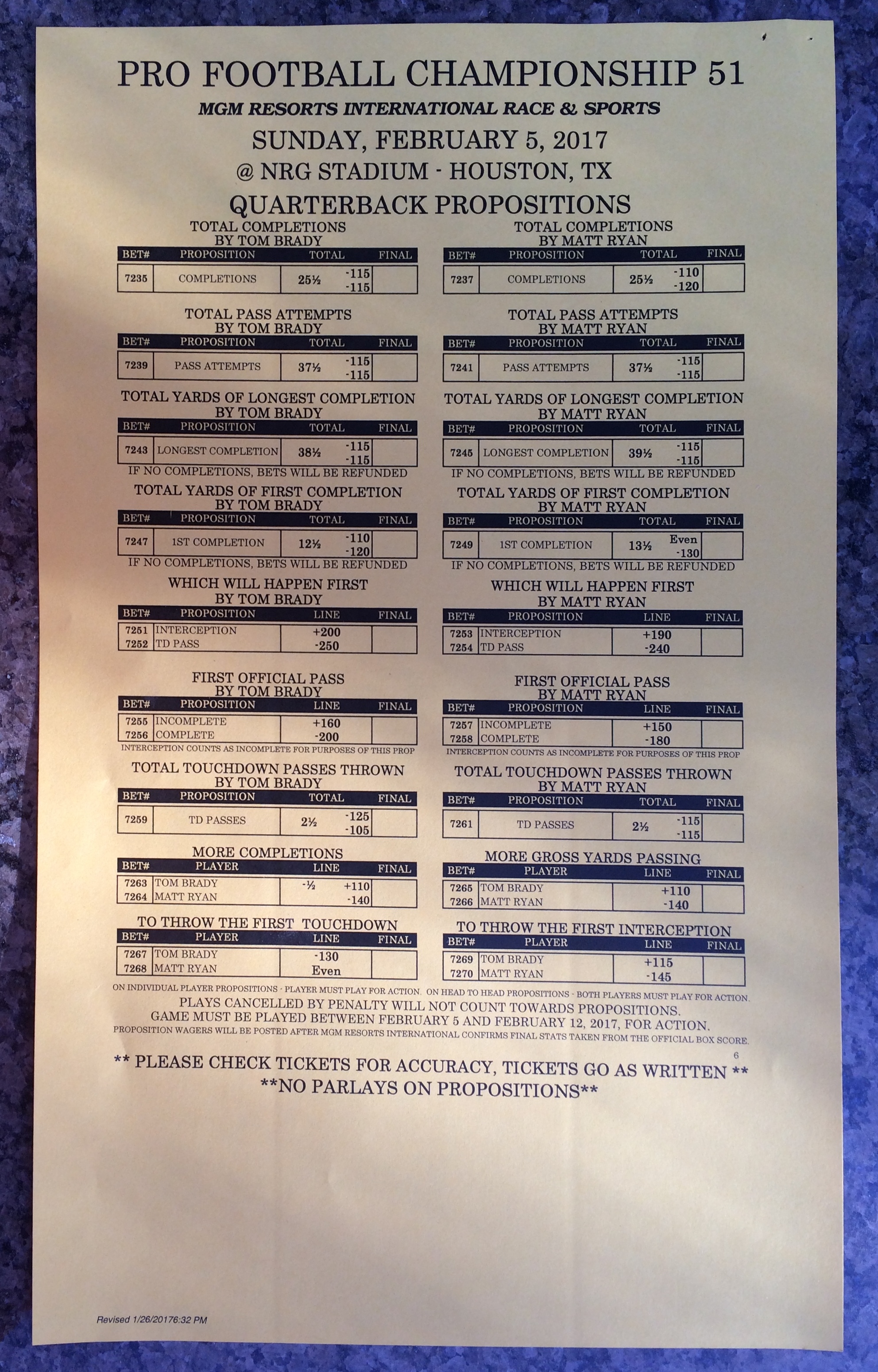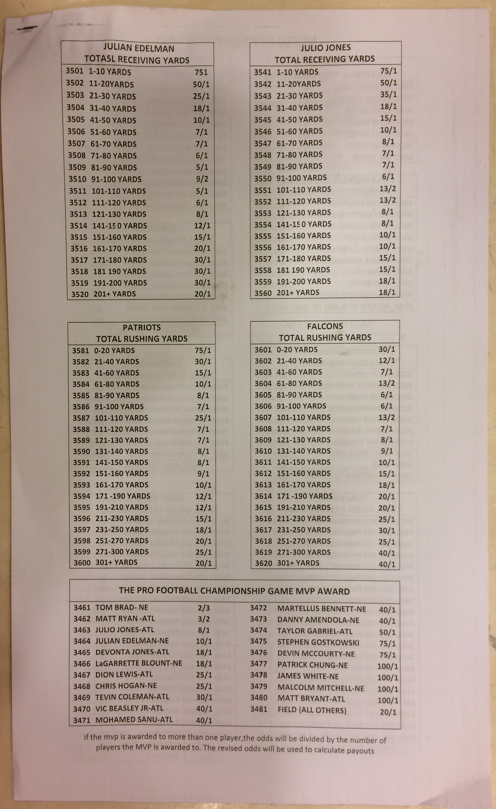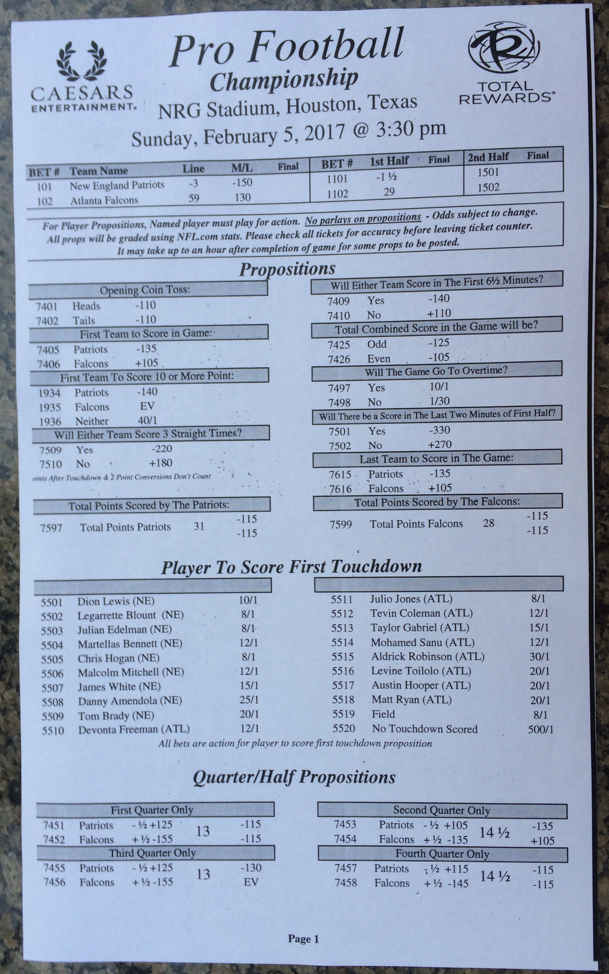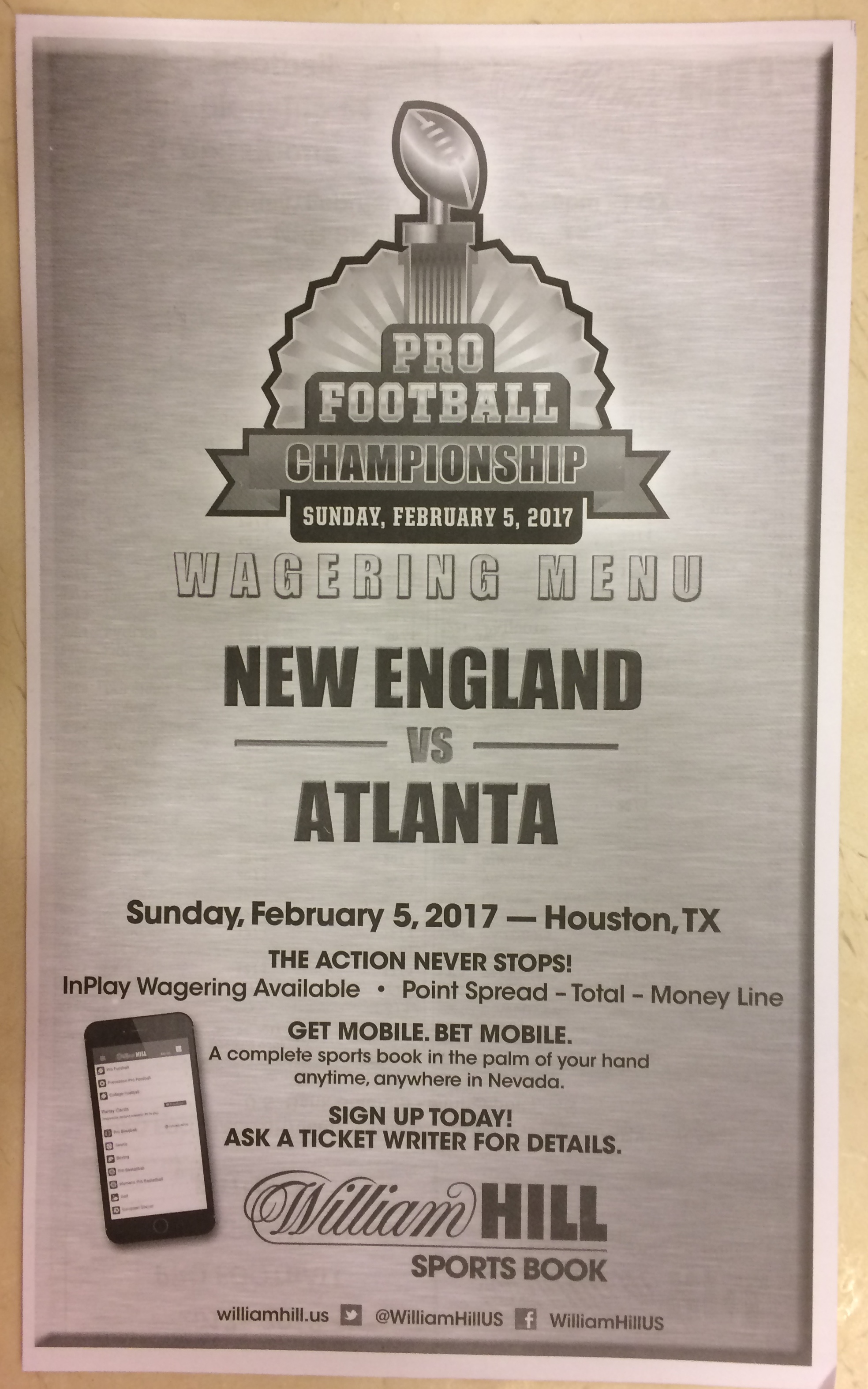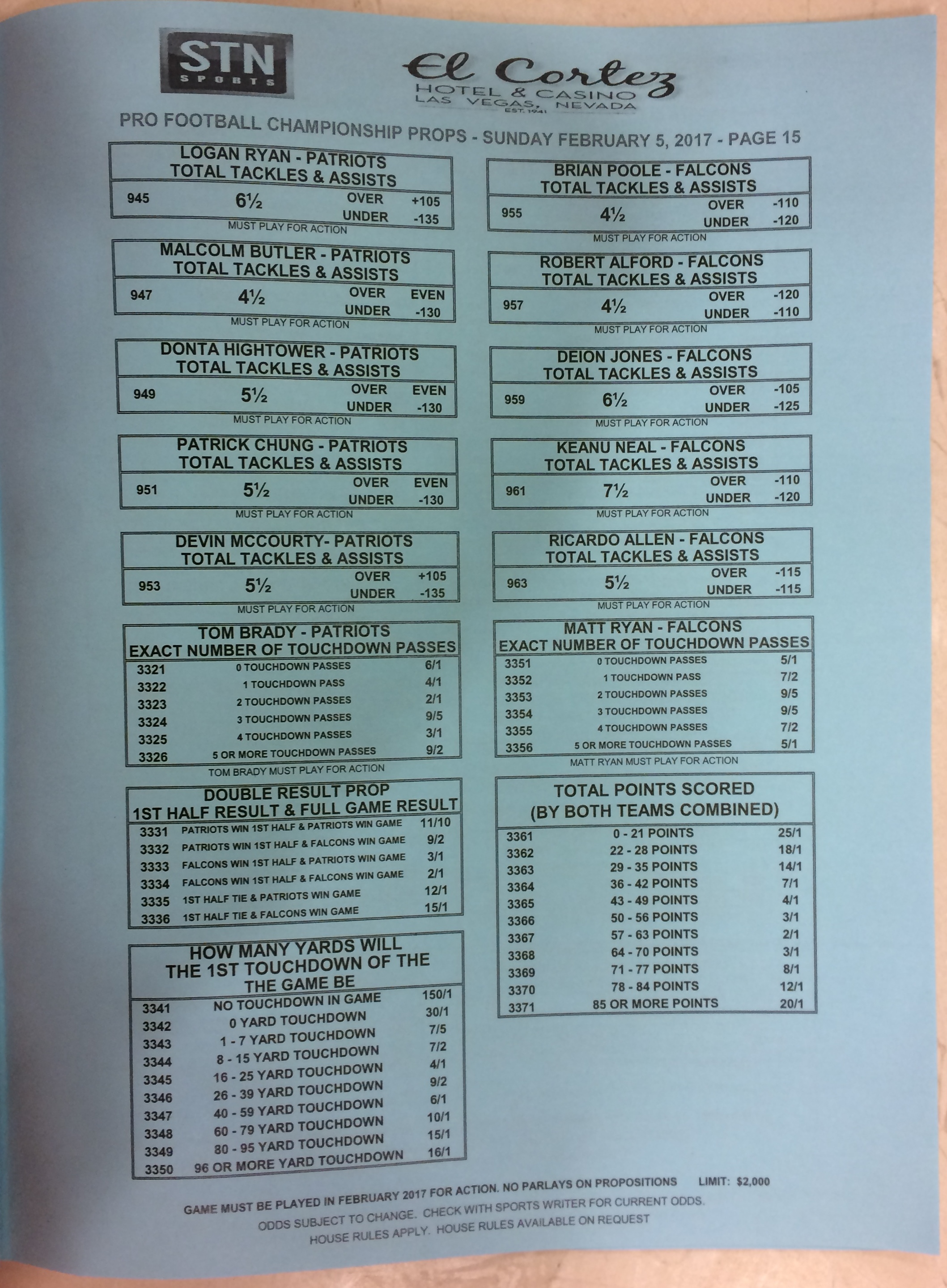 Хотя в этом году я не буду давать вам никаких прогнозов, вы хотя бы можете посмотреть, что есть в наличии. Вот несколько фотографий списков ставок на Супербоул 51. В дни, предшествующие игре, должно появиться больше вариантов.