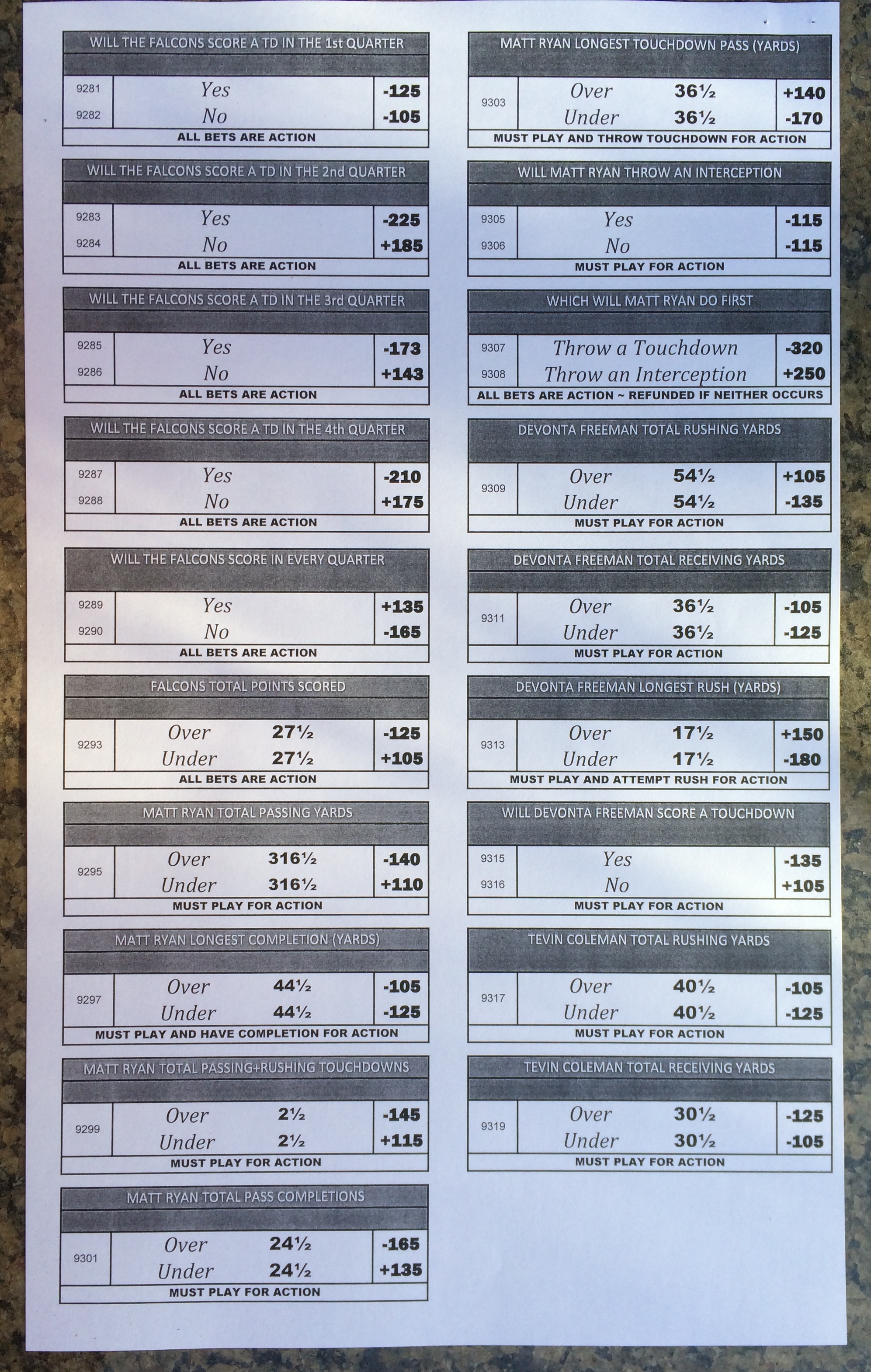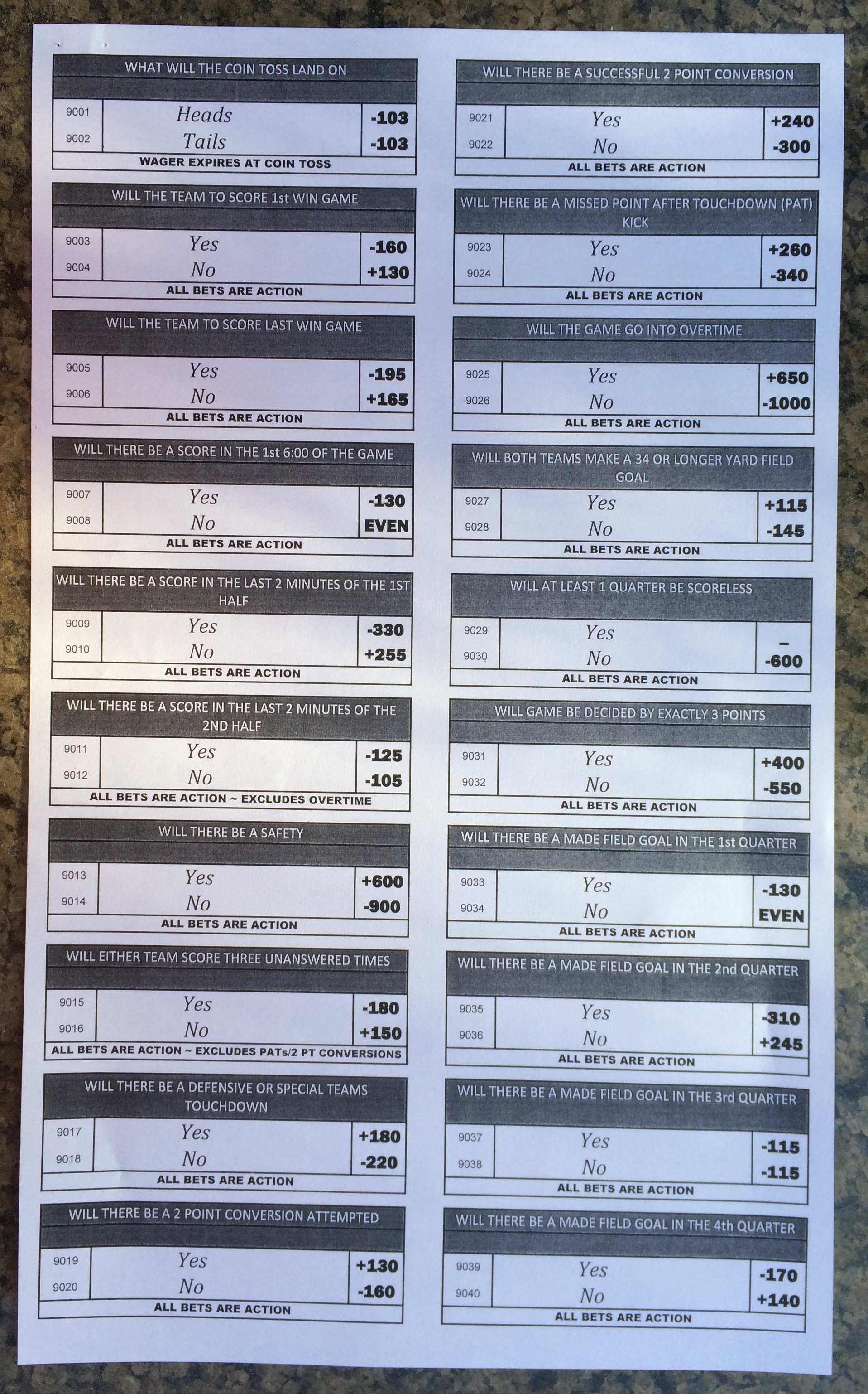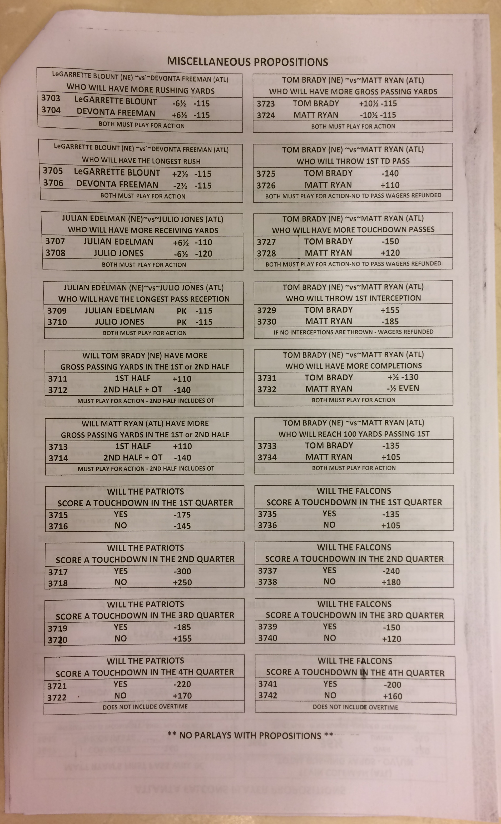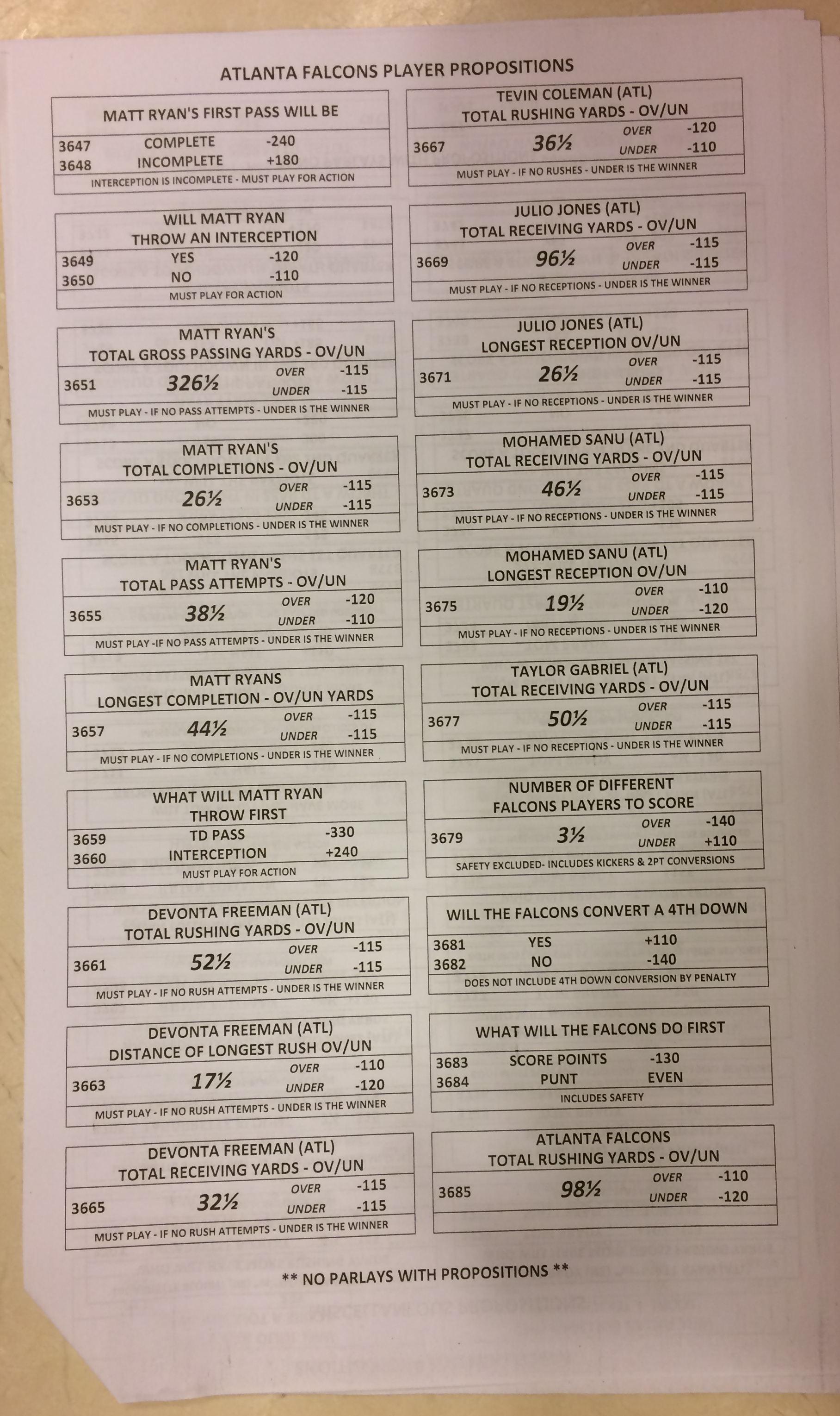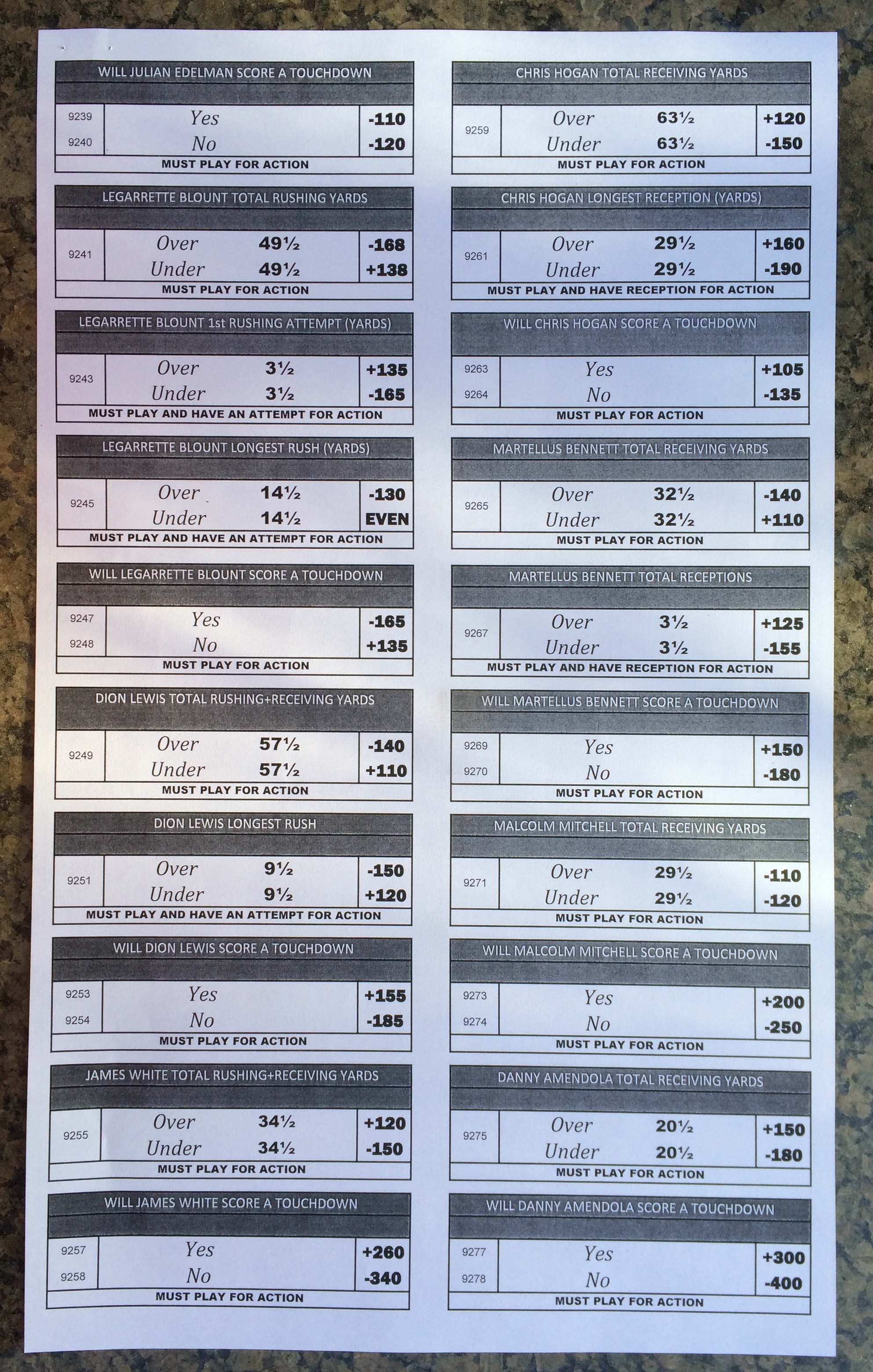 Хотя в этом году я не буду давать вам никаких прогнозов, вы хотя бы можете посмотреть, что есть в наличии. Вот несколько фотографий списков ставок на Супербоул 51. В дни, предшествующие игре, должно появиться больше вариантов.