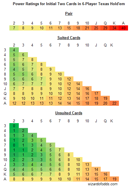 Начальные раздачи в Холдеме в порядке ранга для игры вшестером