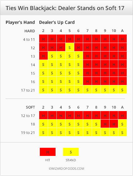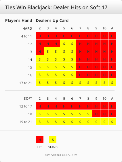 В следующих таблицах показана стратегия в зависимости от того, берет ли дилер карту или останавливается при мягкой 17. Эти таблицы верны для любого количества колод.