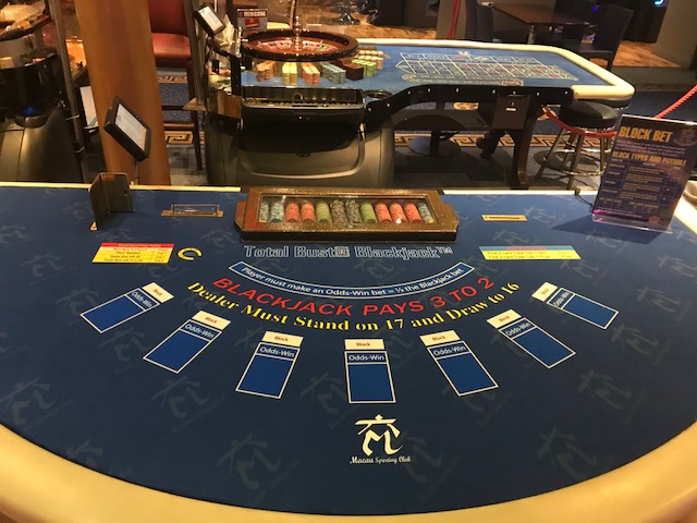Total Bust Blackjack — это разновидность блэкджека, в которой дилер выплачивает премию за перебор, набрав 23 или более очков. Для этого предусмотрена дополнительная ставка, которая выигрывает, если у игрока на старте нечётное количество очков, и эта ставка оказывается выигрышной. Первое известное мне размещение этой игры было в развлекательном комплексе Macau Entertainment Complex в Корке, Ирландия.