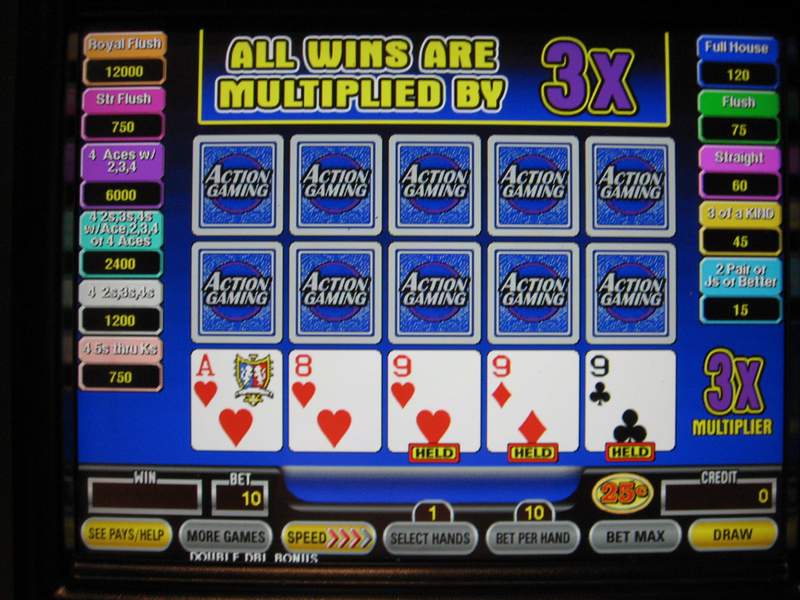 В этой раздаче мне досталась старшая карта – 9 (помните, тузы считаются младшими). Я поставил 10 монет в бонусном раунде Double Double, что принесло мне множитель 3x.