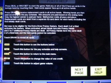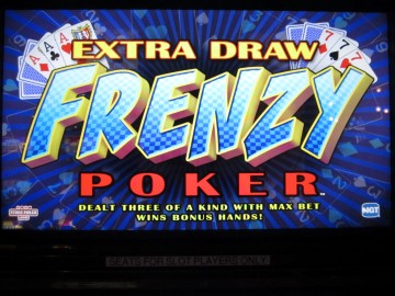 Extra Draw Frenzy — это вариант видеопокера, который я впервые увидел в казино Fremont в Лас-Вегасе 7 декабря 2013 года. Суть игры заключается в том, что если игроку выпадает три одинаковые карты, то он получает от 3 до 7 дополнительных раздач. Игра основана на видеопокере с тремя, пятью и десятью раздачами. Для активации функции Extra Draw игрок должен сделать дополнительную ставку в один кредит за раздачу.
