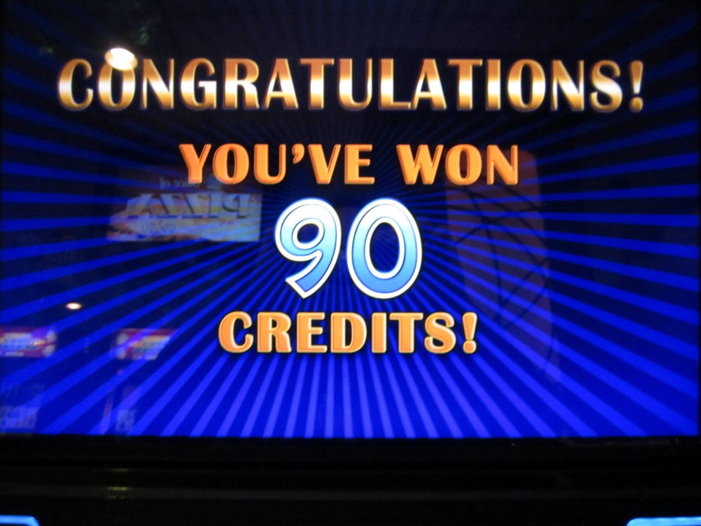 В игре объявили мой выигрыш по дополнительным комбинациям. Каждая из шести тройек принесла 15 кредитов, поэтому мой «выигрыш» составил 6 × 15 = 90 кредитов. Моя первоначальная ставка составляла 18 кредитов, поэтому мой чистый выигрыш составил 90-18=72 кредита.