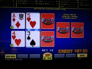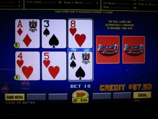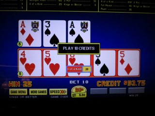 Последние две карты были пятерками. Игра положила их в нижнюю руку, дав мне тройку, за которую мне выплатили 25 кредитов.