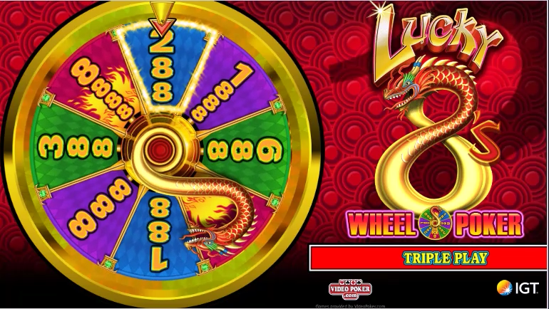 Lucky 8's Wheel Poker — это вариант видеопокера от IGT/Action Gaming. Игра похожа на традиционный видеопокер на 3 или 5 игроков, со ставкой от 1 до 5 монет на линию. Если игрок ставит 10 монет на линию, активируется бонусная функция. При включенной бонусной функции выпадение трех или более одинаковых карт приводит к бонусному вращению с дополнительным выигрышем.