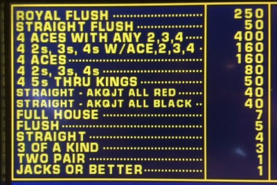 Red Black Double Double Bonus Poker — это разновидность видеопокера, которую я заметил в Hard Rock в Лас-Вегасе 5 апреля 2016 года. Игра проходила на старом автомате, поэтому я предполагаю, что она существует уже довольно давно, но каким-то образом ускользнула от моего внимания. Она работает как обычный Double Double Bonus , за исключением того, что есть дополнительная линия для стрита 10-A, состоящего из карт одного цвета.
