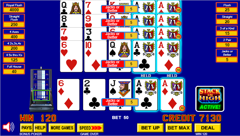 Один из вариантов видеопокера, который я видел на выставке G2E, а теперь и на VideoPoker.com, — это Stack 'em High Poker.