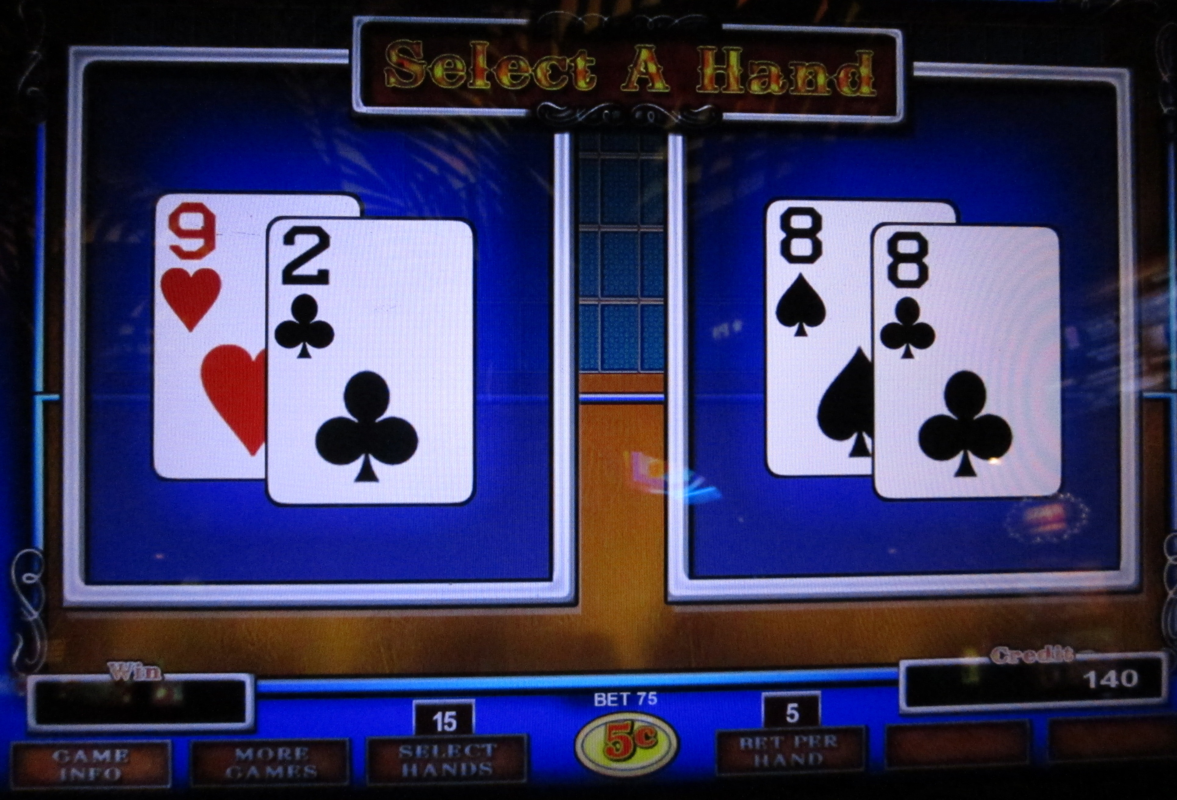 На картинке выше мне нужно было выбрать, с чего начать: с разномастных карт 9-2 или с пары восьмерок. Я выбрал восьмерки.