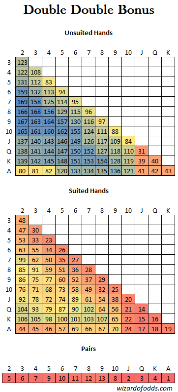 Следующая стратегия подойдет для игры Double Double Bonus со следующими таблицами выплат. Выигрыши указаны за одну монету, исходя из ставки в пять монет за раздачу.