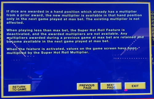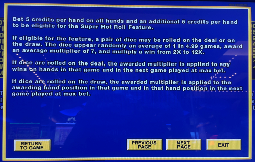 Впервые я заметил Super Hot Roll в казино Red Rock в Лас-Вегасе 3 мая 2021 года. Это вариация игры Hot Roll , в которой добавлена функция, при которой множители применяются как к текущей, так и к следующей игре.