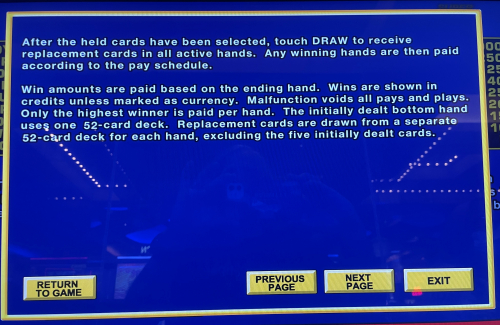- Если игрок делает ставки от одной до пяти монет за раздачу, то эта функция не активируется, и игра проходит как обычный многопользовательский видеопокер.