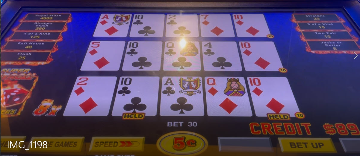На изображении выше я активировал эту функцию, сделав ставку в 10 монет за ход. В результате мне выпала пара тузов, которые я и оставил себе.