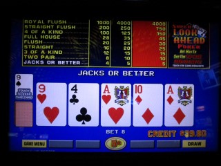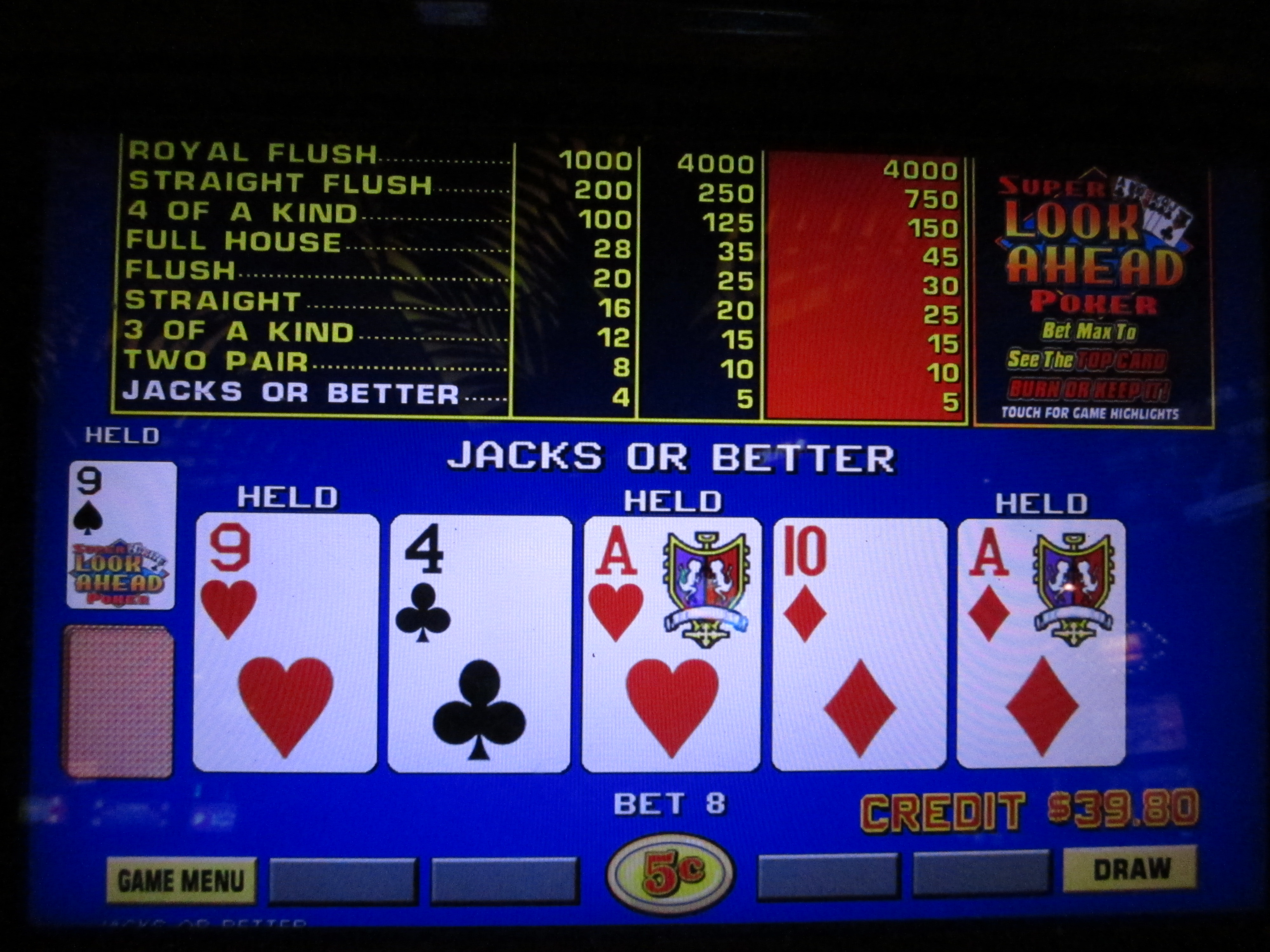 Любой настоящий профессиональный игрок, или даже мошенник, может сказать вам, что если вы знаете следующую карту, которая будет роздана, это даёт игроку огромное преимущество. Именно это вам и говорят в Super Look Ahead Poker. После раздачи игра сообщает вам следующую карту. Вы можете либо принять её, либо сжечь. К сожалению, IGT не настолько глупы, чтобы предоставлять эту информацию бесплатно. Это стоит на три монеты больше обычных пяти, что также немного повышает таблицу выплат. Ниже приведены полные правила.