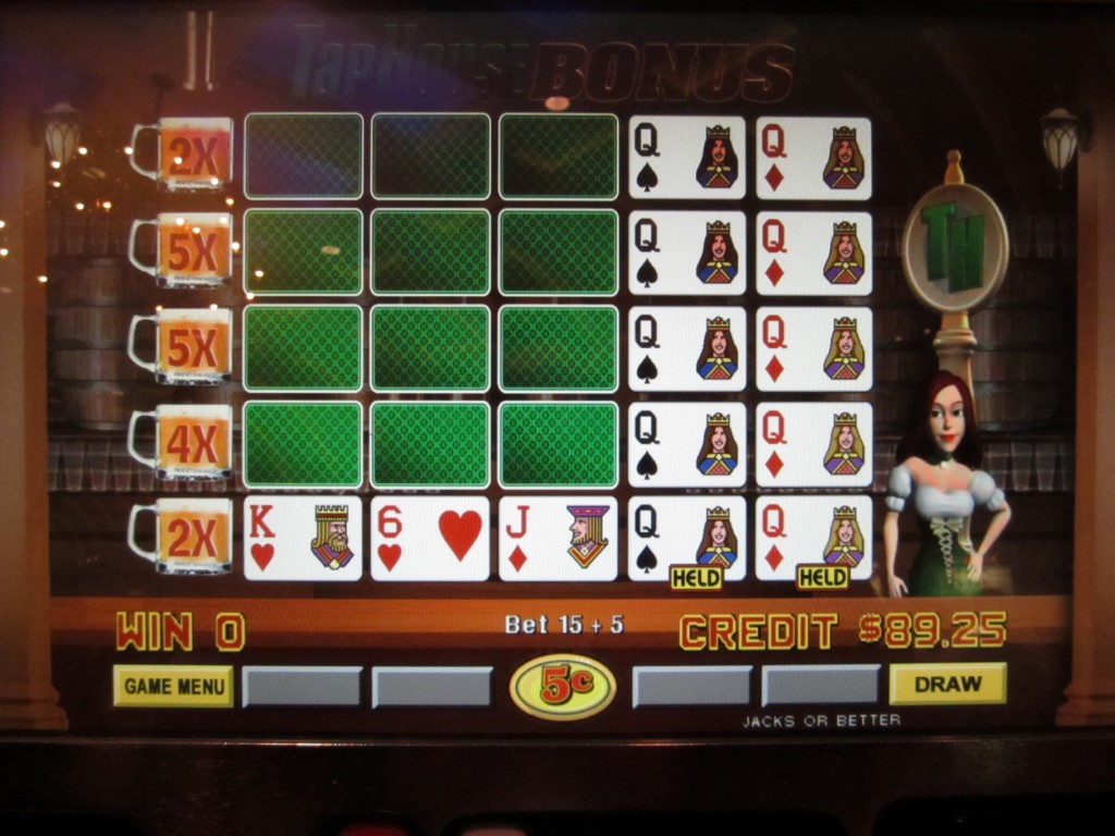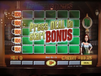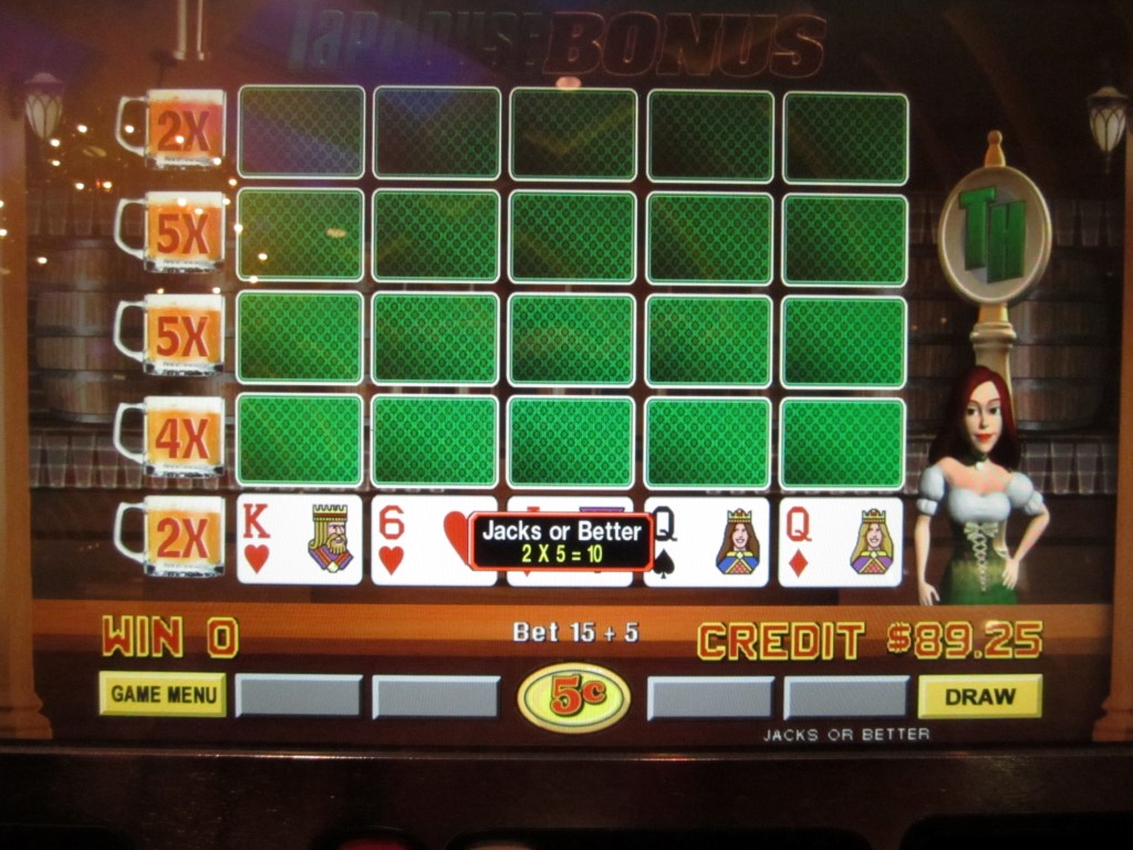 Tap House Poker — это разновидность видеопокера от IGT. Впервые я увидел её 27 декабря 2013 года в казино Suncoast в Лас-Вегасе. Суть игры заключается в том, что если игроку раздают две пары или лучше в играх без джокеров, он получает возможность сыграть в бонусный раунд. В играх с двойками в качестве джокеров для участия в бонусном раунде требуется стрит или лучше. Бонус состоит из одной раздачи на пять игроков, при этом каждая из пяти рук в раздаче имеет множитель до 10x. Игрок делает дополнительную ставку в 5 кредитов, чтобы активировать бонусную функцию.