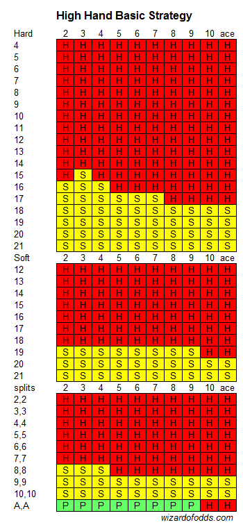 В следующей таблице представлена основная стратегия для игры с самой сильной рукой.