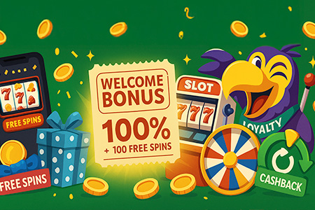 Говоря о бонусах, на которые стоит обратить внимание, начнем с приветственного бонуса или бонуса за регистрацию . Этот бонус тепло приветствует вас, предоставляя бонус на сумму вашего первого депозита в казино. Обычно это 100% от суммы депозита, но, как уже говорилось, с учетом требований по отыгрышу. Этот бонус может быть включен в приветственный бонусный пакет и содержать до 100 бесплатных вращений. Способ формирования бонуса зависит от оператора и его целевой аудитории.