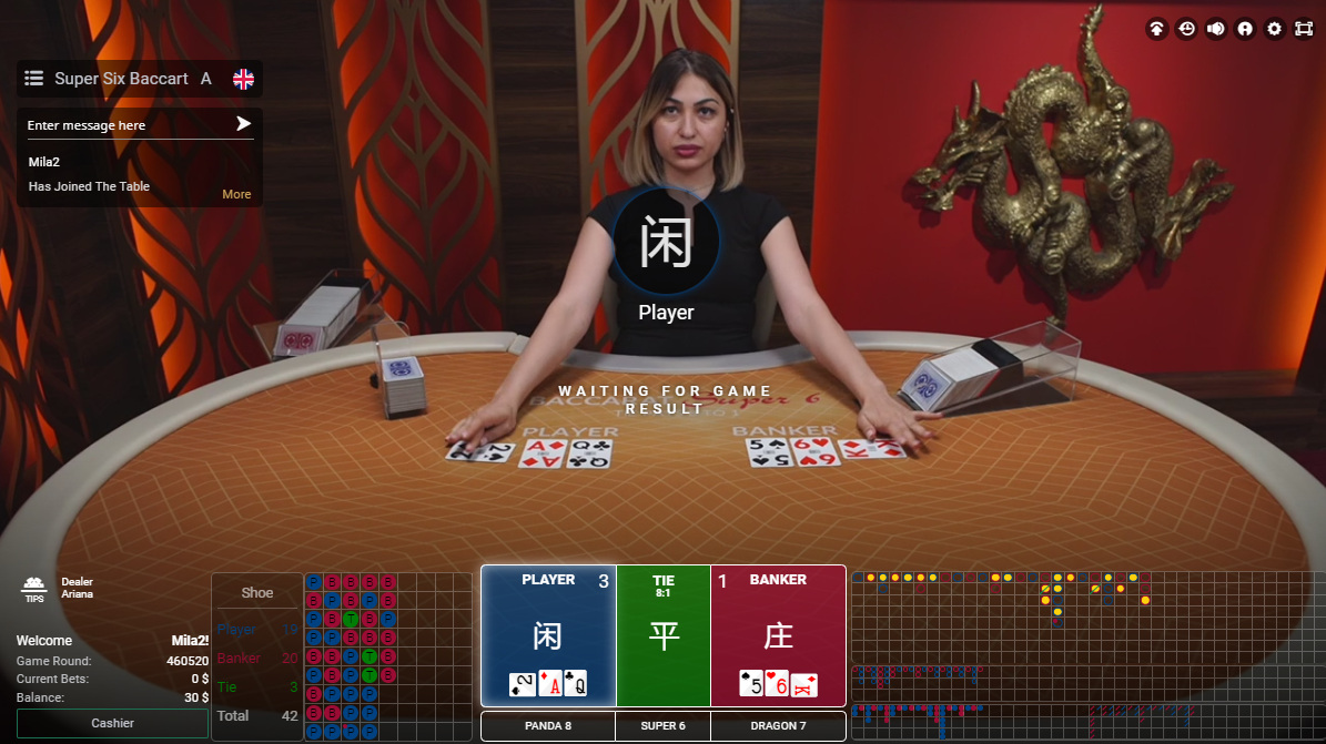 В SA Gaming есть удобная функция, позволяющая игроку играть в обычную баккару или в Super 6 за одним столом. Просто один клик переключает правила.