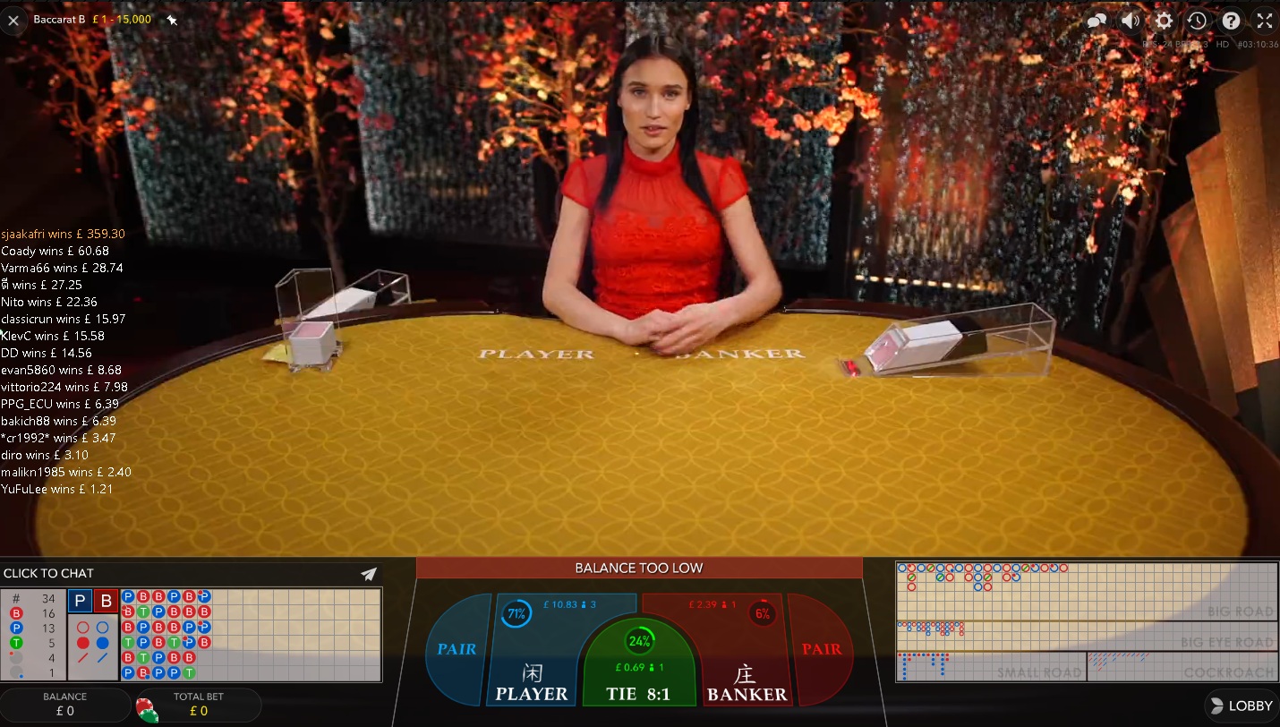 Evolution предлагает как стандартную баккару, так и Super 6. В обоих вариантах доступен широкий выбор дополнительных ставок.
